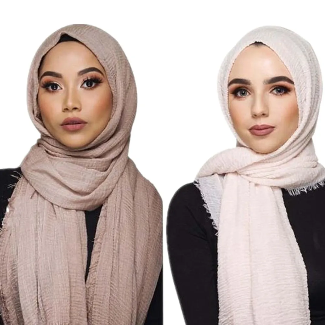 2021 high quality crinckle cotton viscose linen hijab cotton pleated hijab crinkle scarf