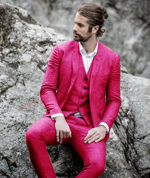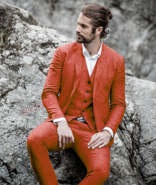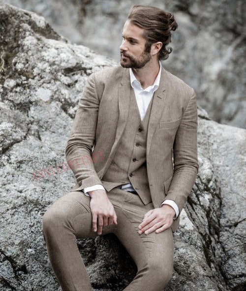 2021 Men Suit Linen Beige For Beach Wedding Casual Man Blazer Custom Groom Tuxedo Jacket Pants Set Mens Suits 3 Pieces