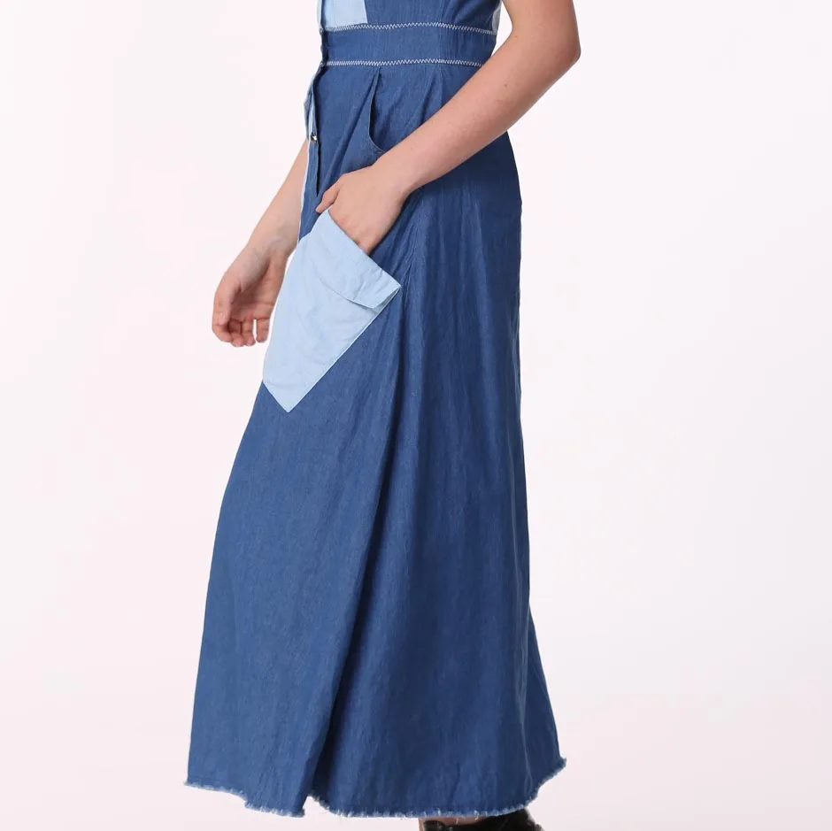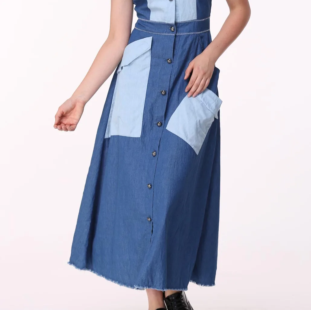A Line High Waist with Pockets Buttons Maxi Long denim skirts For women