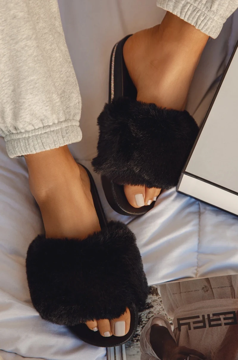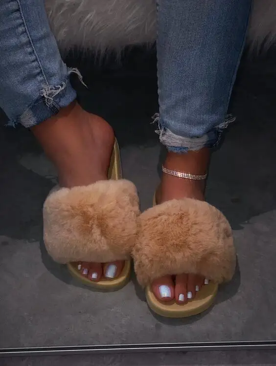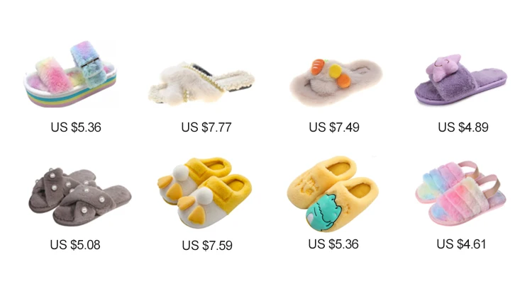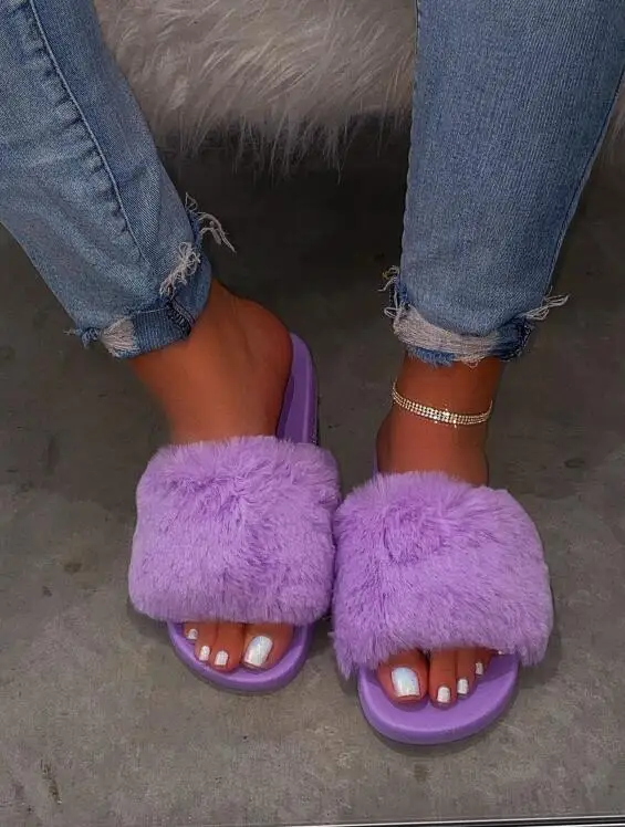 BUSY GIRL AL9025 Women's slides slippers flat fur bling slides slippers for ladies outdoor purple fur slides