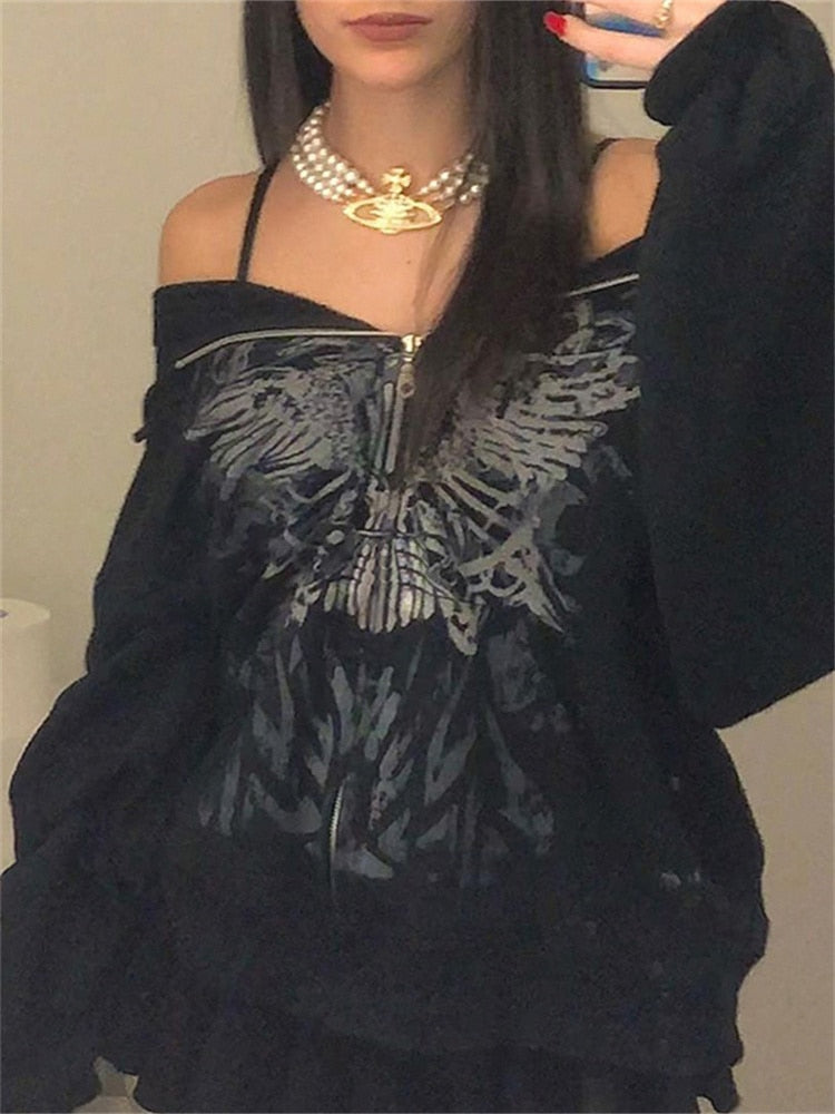 Butterfly Print Grunge Fairycore Hoodie Jackets Gothic Zip Up Loose Autumn Coats Retro Harajuku Cute Aesthetic Top Cuteandpsycho