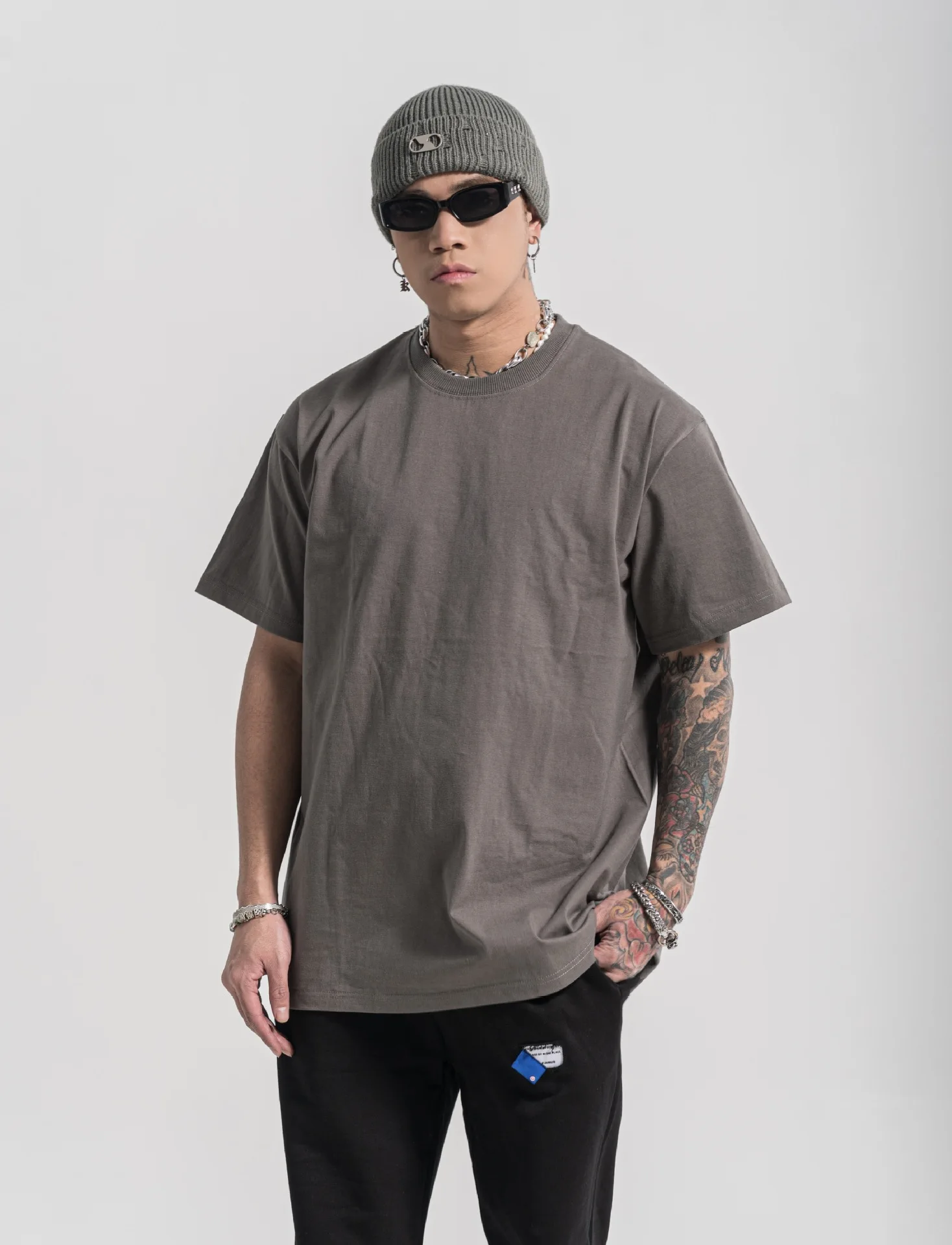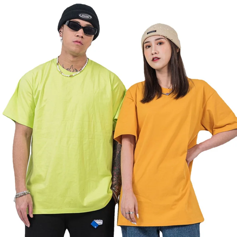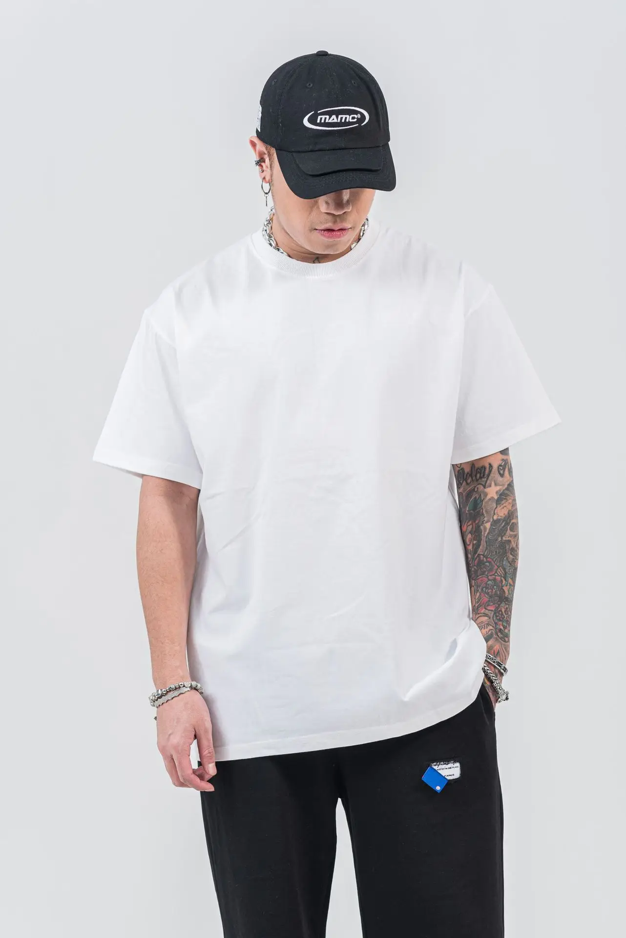 Casual Drop Shoulder Over Size T-shirt Custom Logo Short Sleeve T-shirts 210G Round Neck Men T-shirt Couples Tshirt