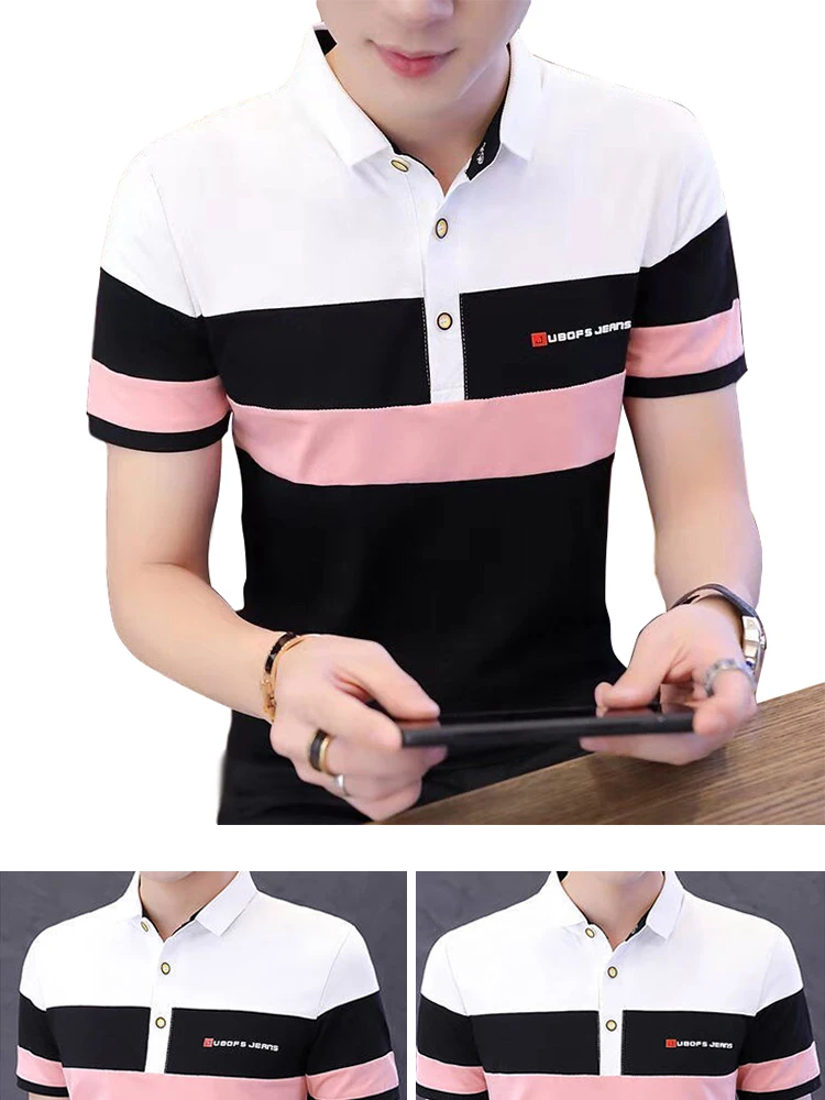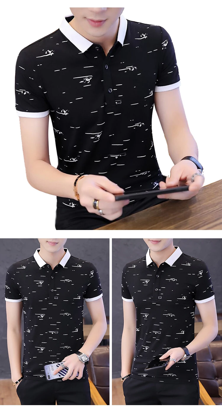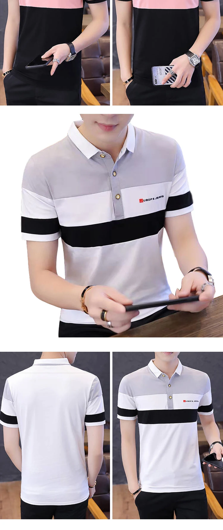 Cotton summer men's short-sleeved t-shirt Korean lapel POLO shirt trend bottoming shirt half-sleeved shirt