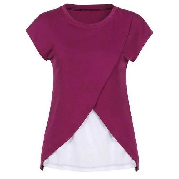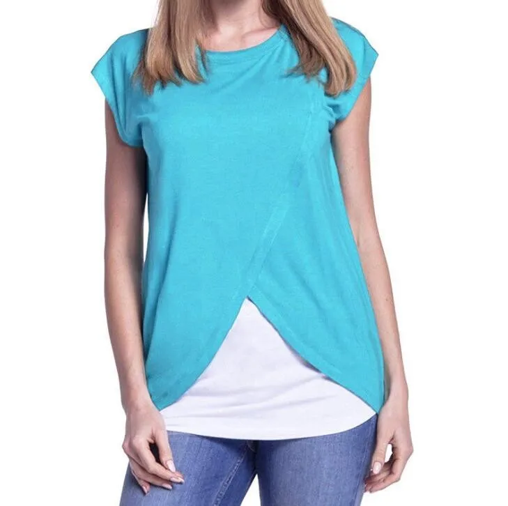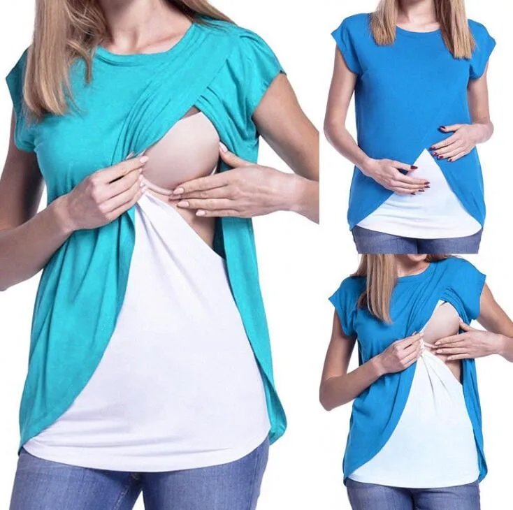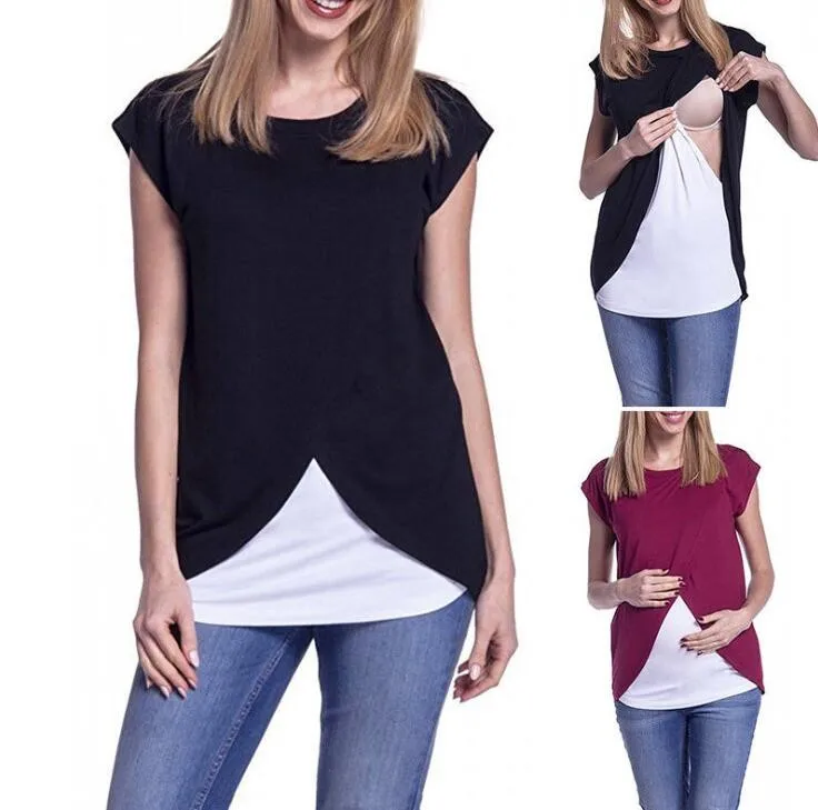 cz38133w 2018 Women Cap Sleeve Maternity Nursing Tops Contrast Color Breastfeeding Clothes Maternity T Shirts Blouse