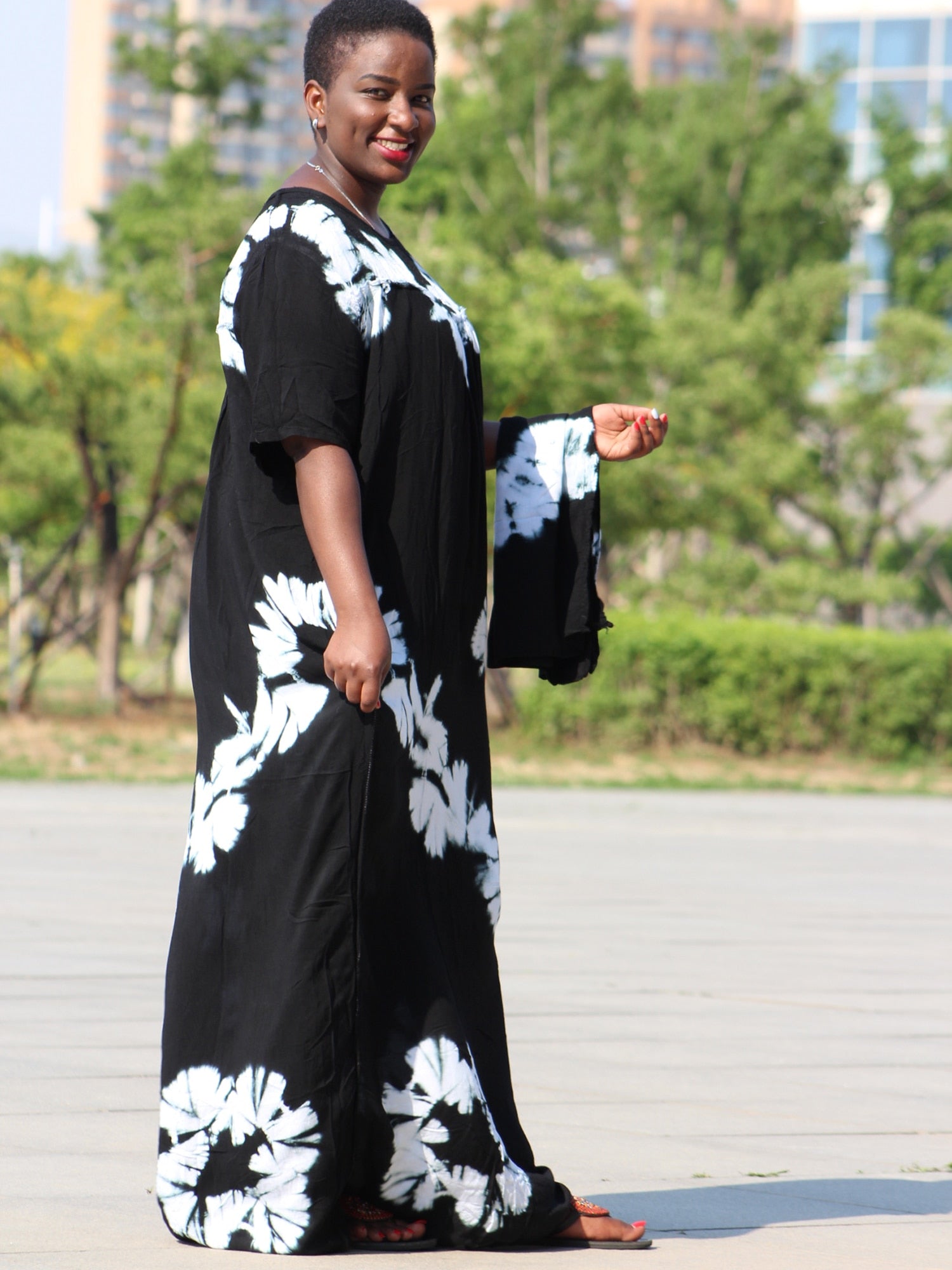 Dashikiage black cotton soft textured comfortable dress with a big scarf