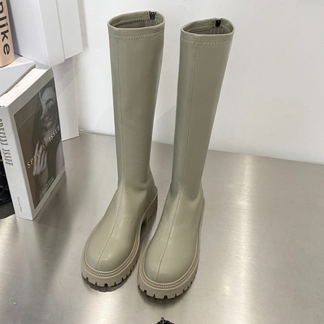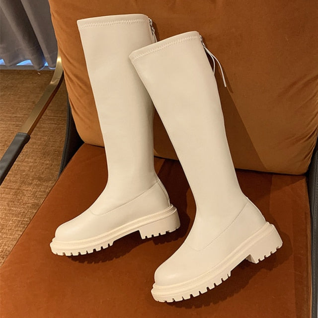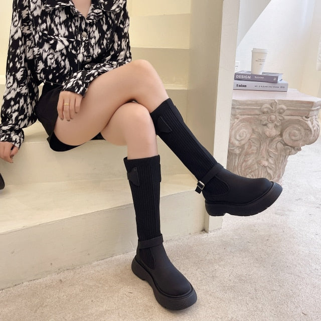 Designer Knee-High Casual Women Shoes 2021 Winter New Mid-heels Goth Chelsea Snow Boots Gladiator Chunky Fashion Boots Mujer