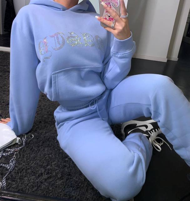 Diamonds Tracksuit 2 Piece Set Women Oversize Hoodies Sweatshirt Sweatpants Joggers Sport Pant Suits Femme Outfits Sweatsuits