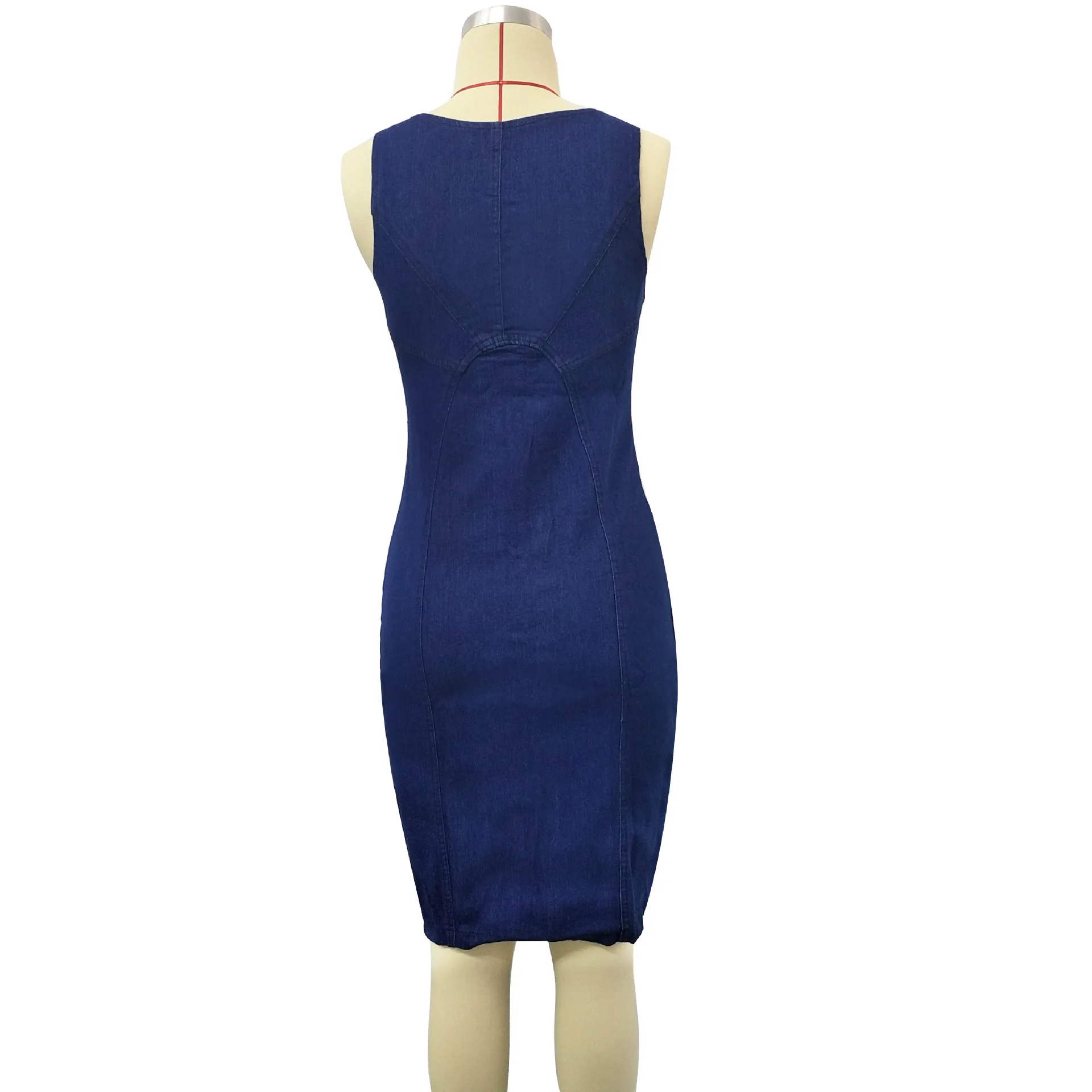 Droping shiping ladies jeans dresses women front zipper sleeveless mini denim dresses female