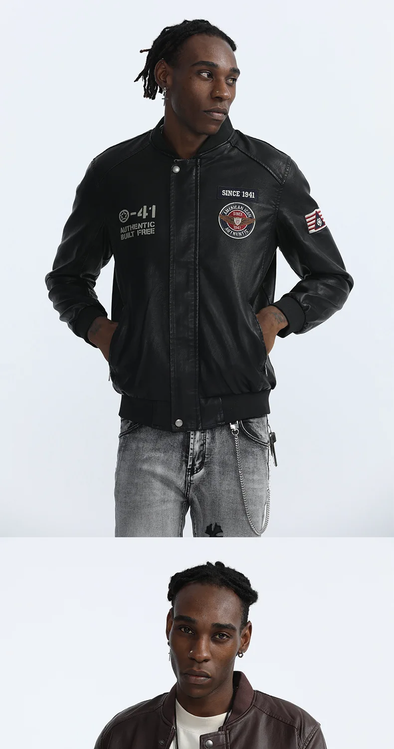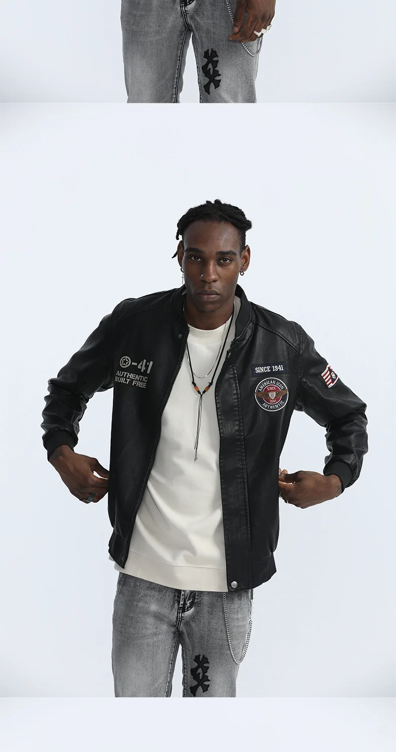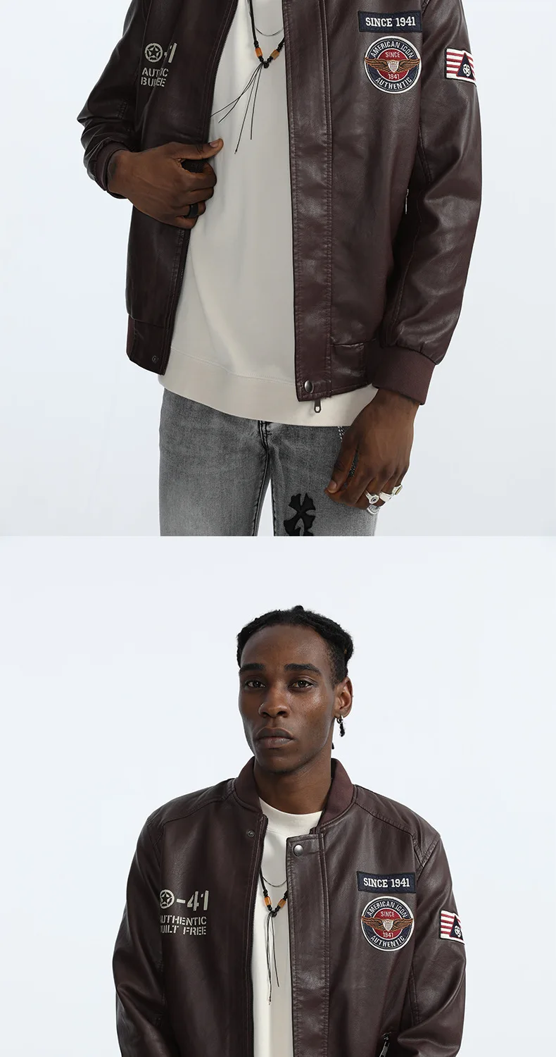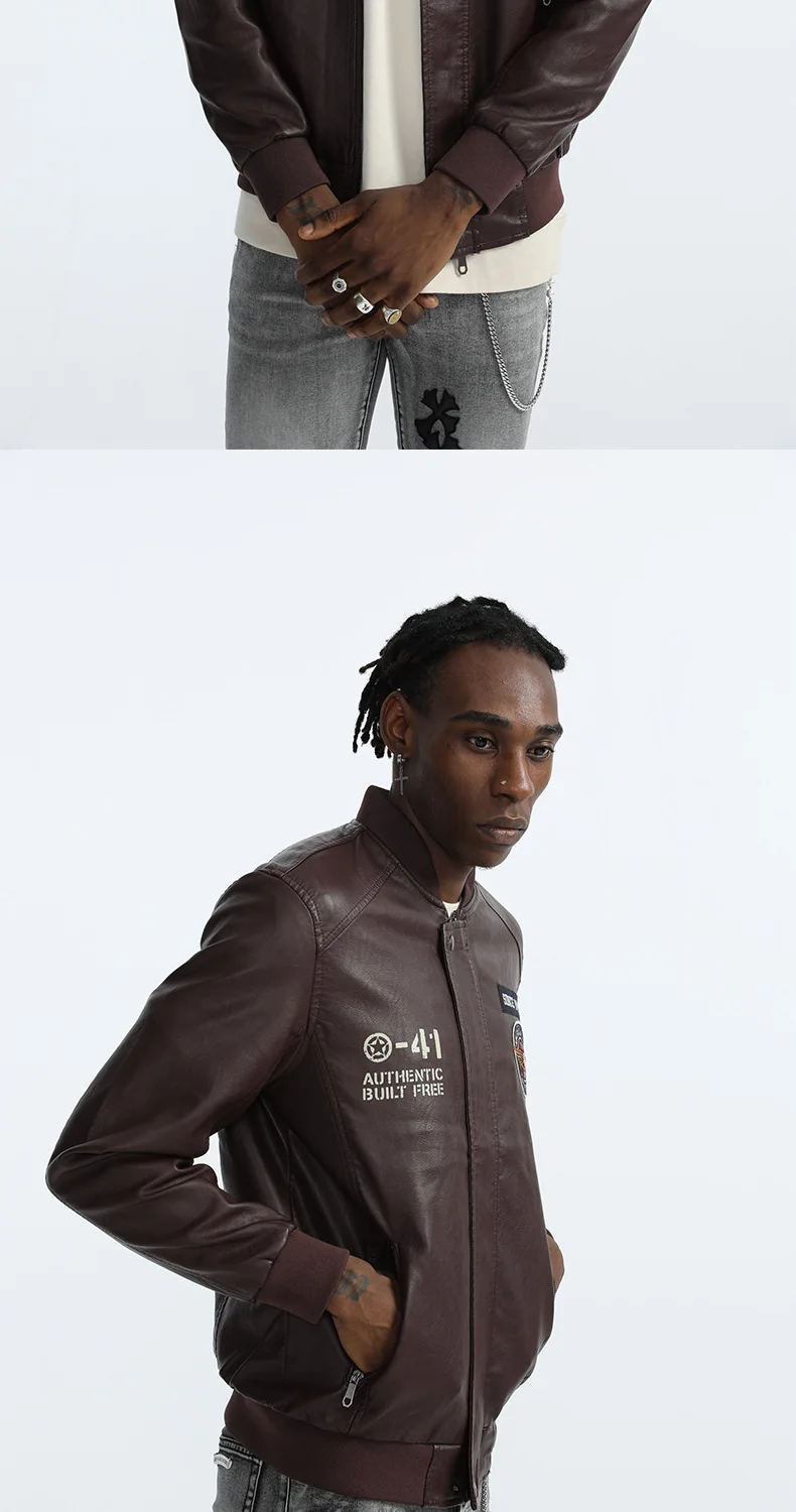 Dropshipping 2021 Zipper Men's Plus Size Windbreaker Leather Pu Mens Jackets