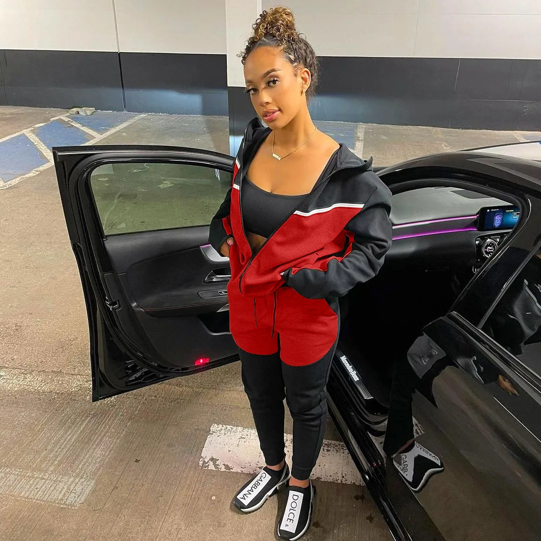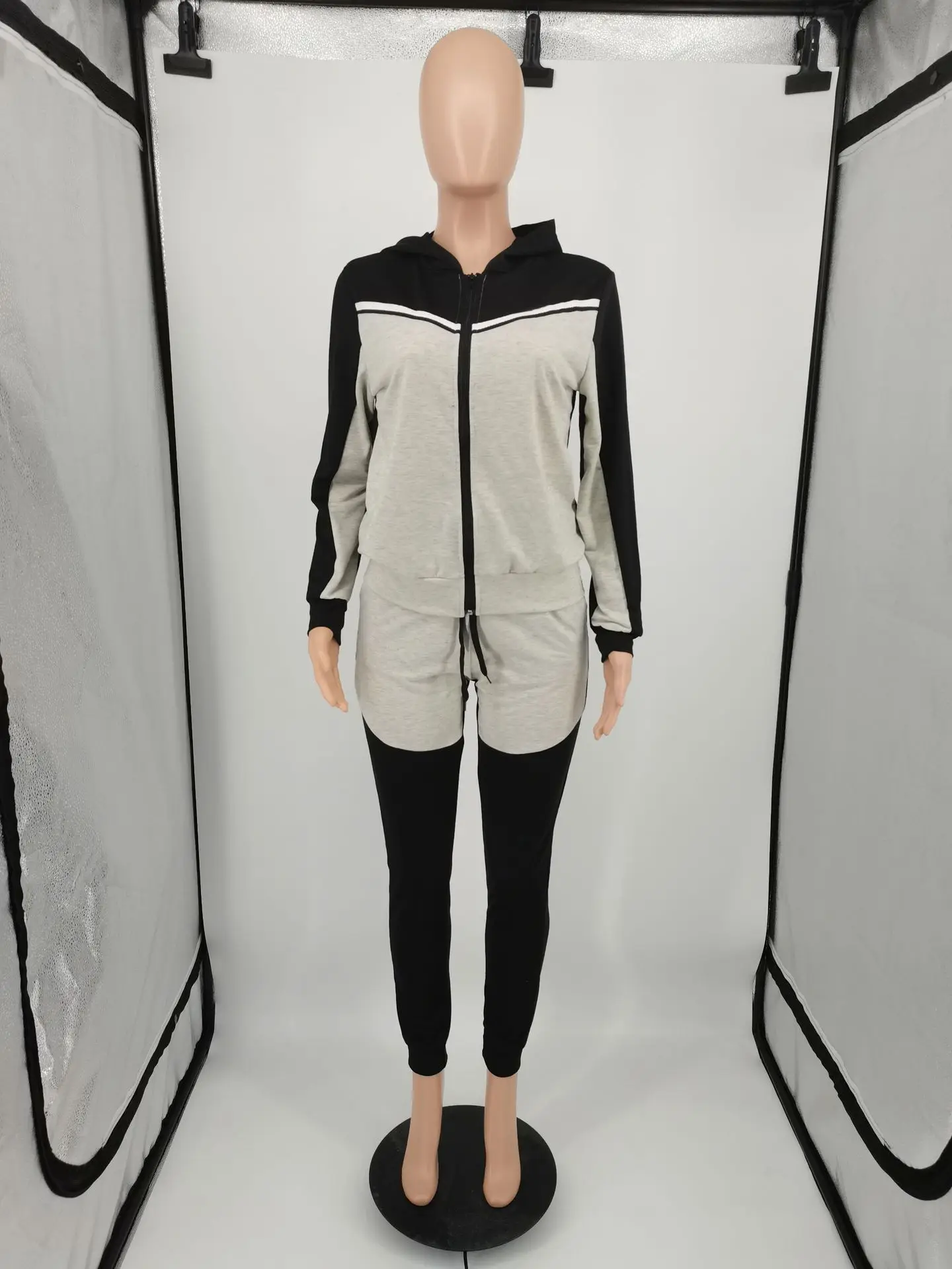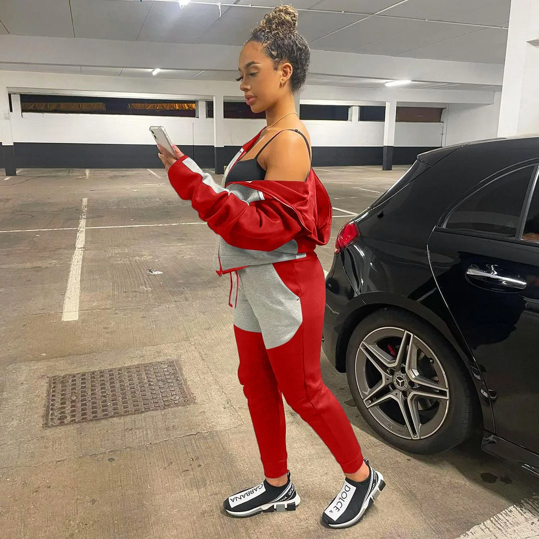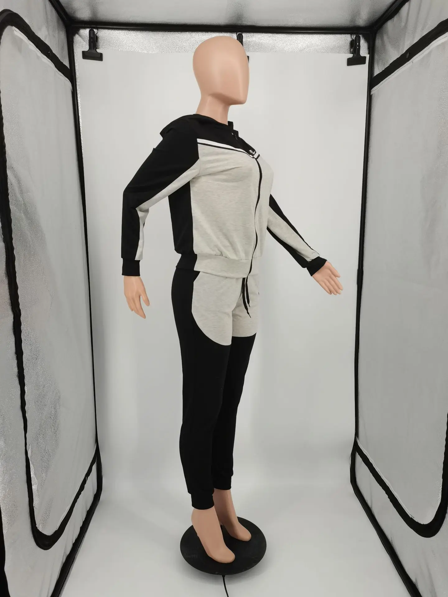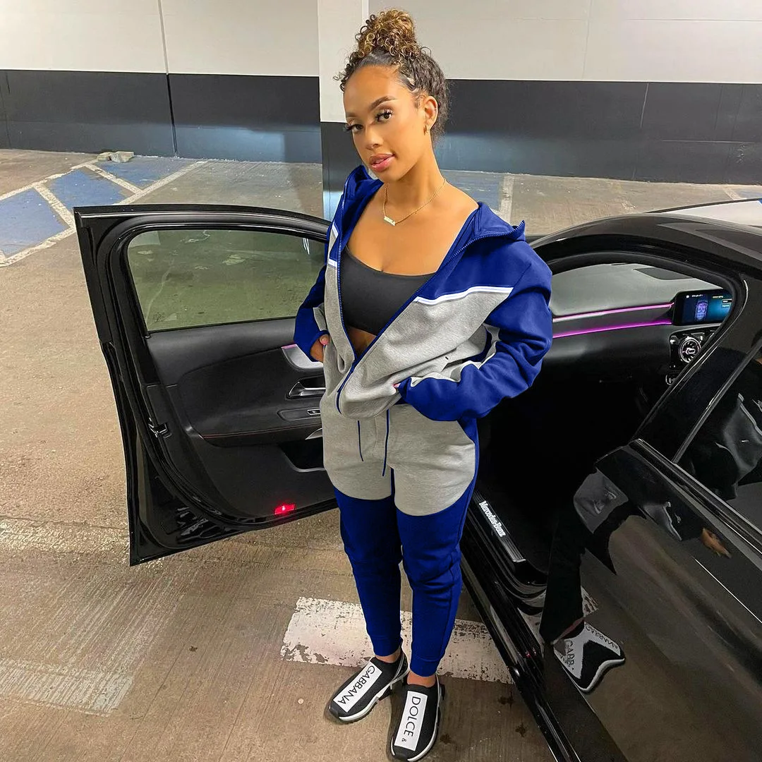 Dropshipping custom logo 2022 women stitching style zipper hoodie fashion two-piece set
