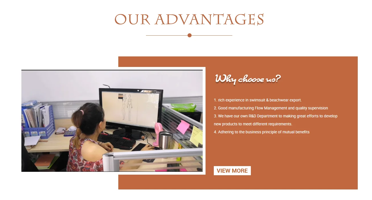 As a trading company, we have a rigorous suppliers management and evaluation system, ensure to give our customers high quality and cost performance in different suppliers, we also make many close cooperative plants in setting up the system, allow you to choose many styles of swimwear from different factories in one order. Our company has rich experience in product purchasing, Manufacturing Flow Management and quality supervision. Besides, we have our own Research and Development Department to making great efforts to develop new products to meet different requirements. Adhering to the business principle of mutual benefits, we have had a good reputation among our customers because of our perfect services, quality products and competitive prices. Whether selecting a current product from our catalog or seeking someone for your own design of swimwear, you can talk to our customer service center about your sourcing requirements, Crazybuy is your reliable one stop service supplier!