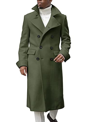 Ebifin Men's Notch Lapel Double Breasted Long Trench Coat Casual Cotton Blend Peacoat