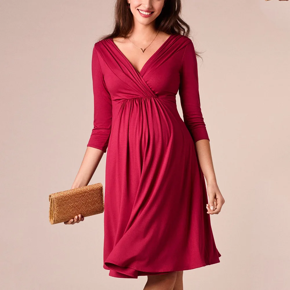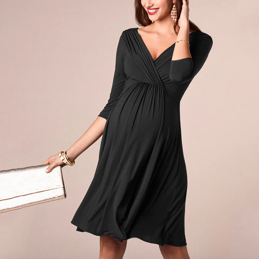 European and American folds deep V-neck fashion party evening dress Pregnancy Wear Cloth Cotton Wholesale Lady Maternity Dress