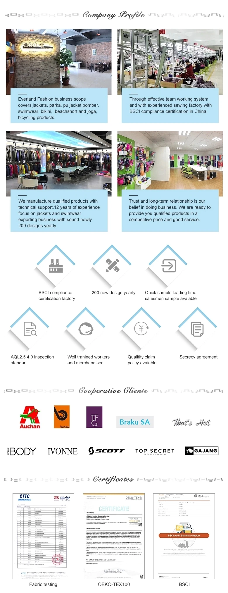 Everland Fashion Co., Limited was set up in 2004. While through effective team working system and with experienced sewing factory with BSCI compliance certification in China. We manufacture qualified products with technical support.