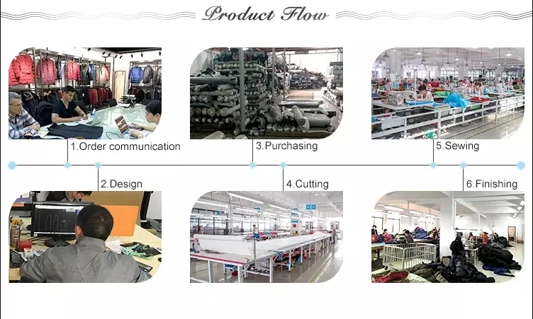 The factory is 3000 M2, with sample room 300 M2 and 30 lines of subcontracted sewing line. Our main products are jackets and outwears for Men and Lady between 18-50 years old in polyester, nylon, cotton and PU fabrics.
