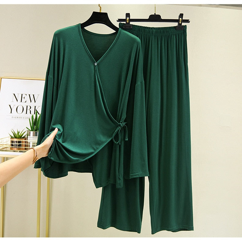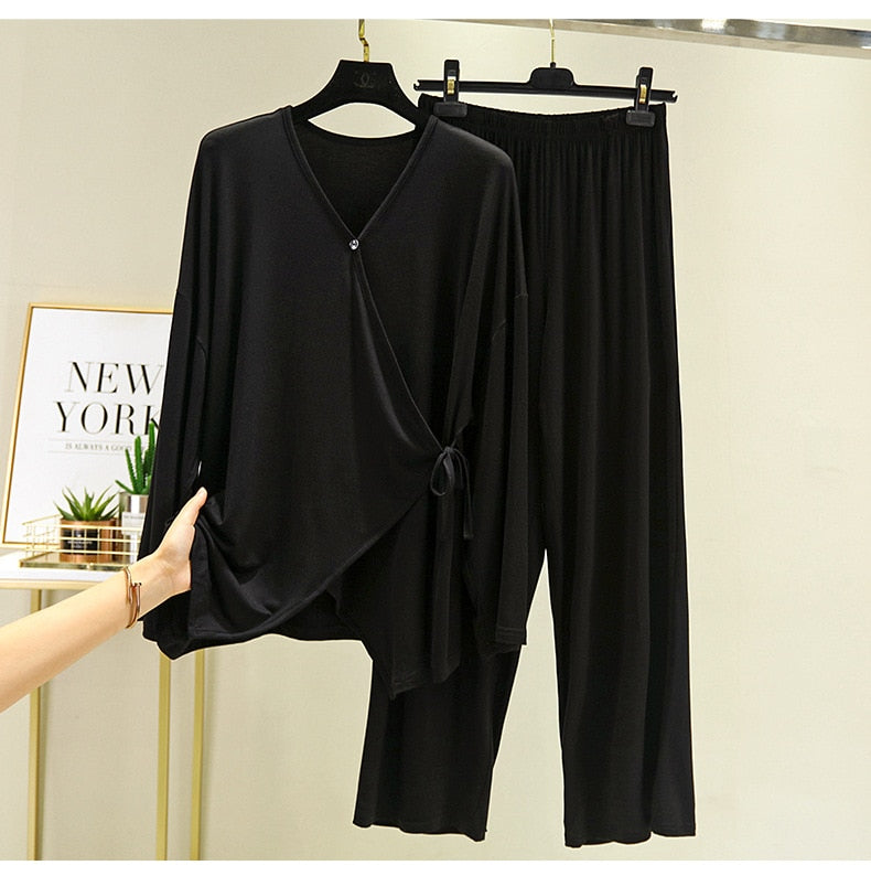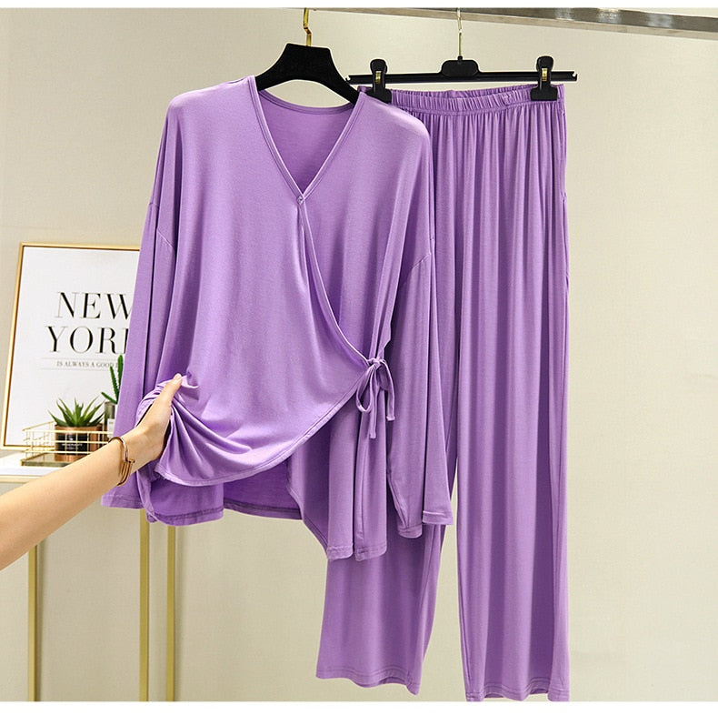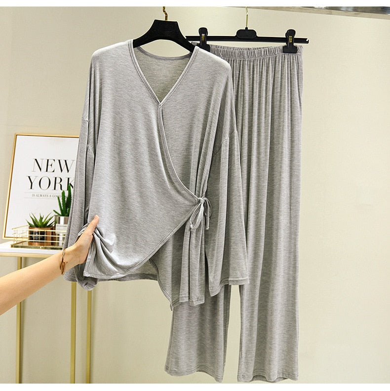 Fdfklak 2 Piece Set Pink/Gray Home Suit For Women Modal Home Cloth Loose Women's Pajamas Set Female Homewear Suit 2020 New