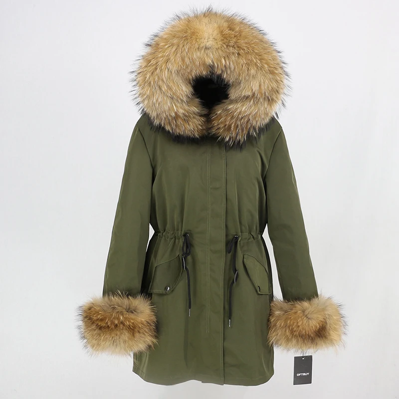 Free shipping Winter Jacket Women Real Fox Fur Liner Coat Big Natural Raccoon Fur Hood Thick Warm Long Parkas Streetwear New