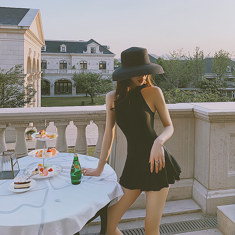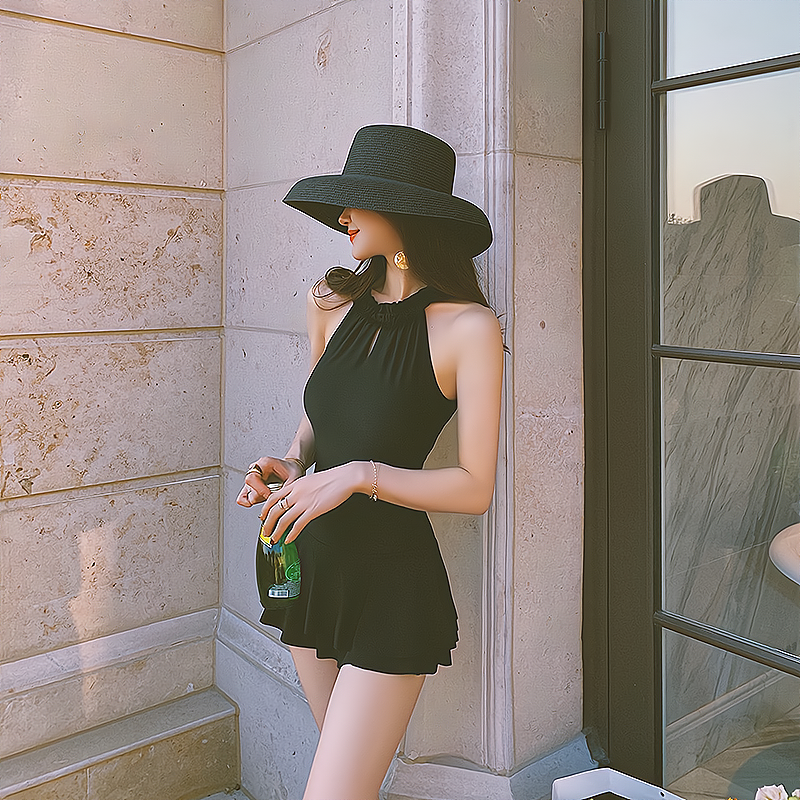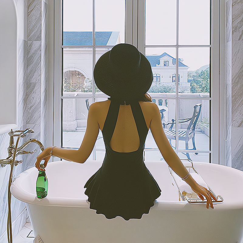 French Swimsuit Women's Covering Belly Thin Ins Style Hot Spring New Sexy Fairy Style V Neck Backless Dress Style One Piece Swimsuit