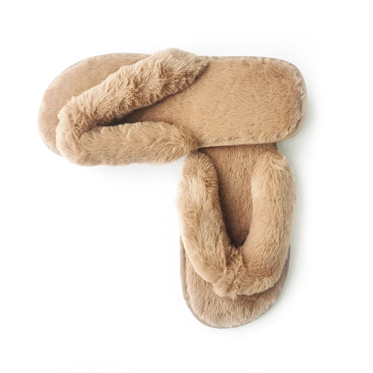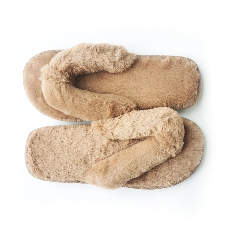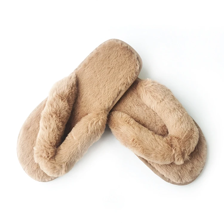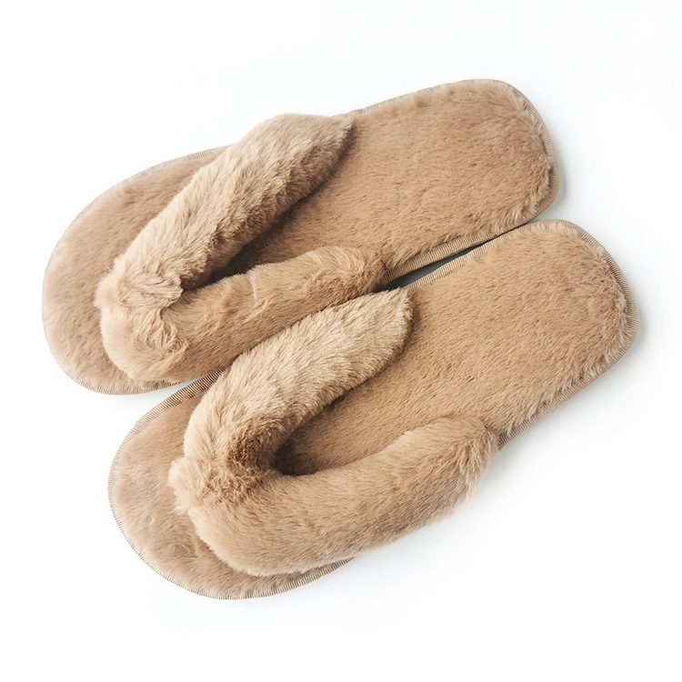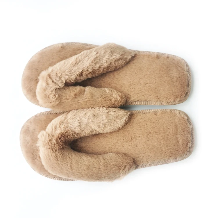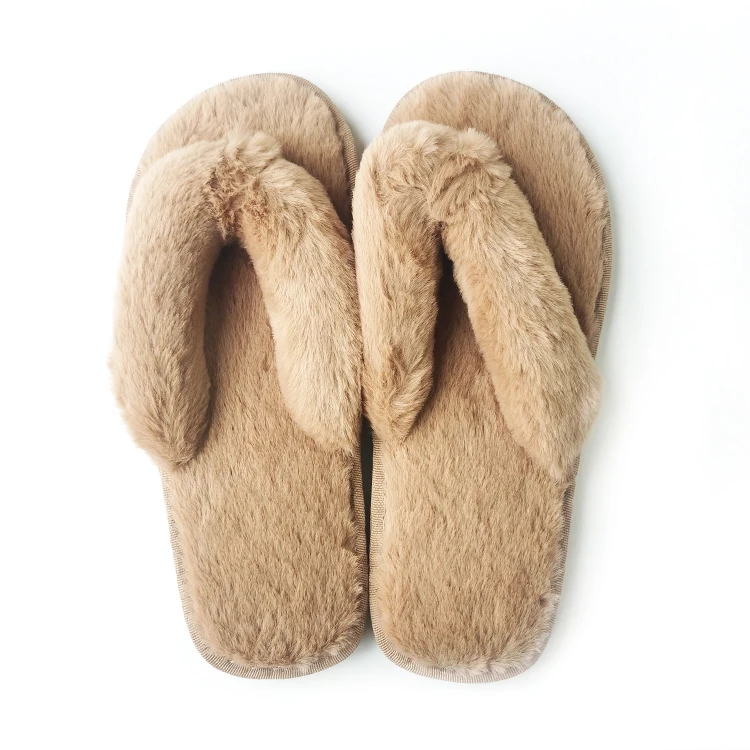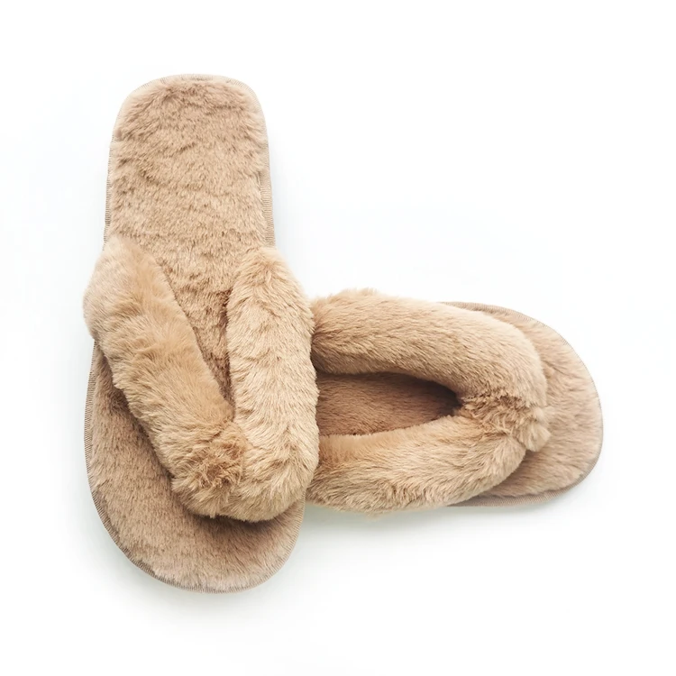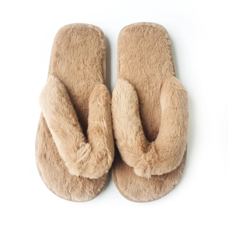 Fuzzy Comfortable Furry House Slippers Flip Flops Brown Color Women Fluffy Winter Slipper for Ladies