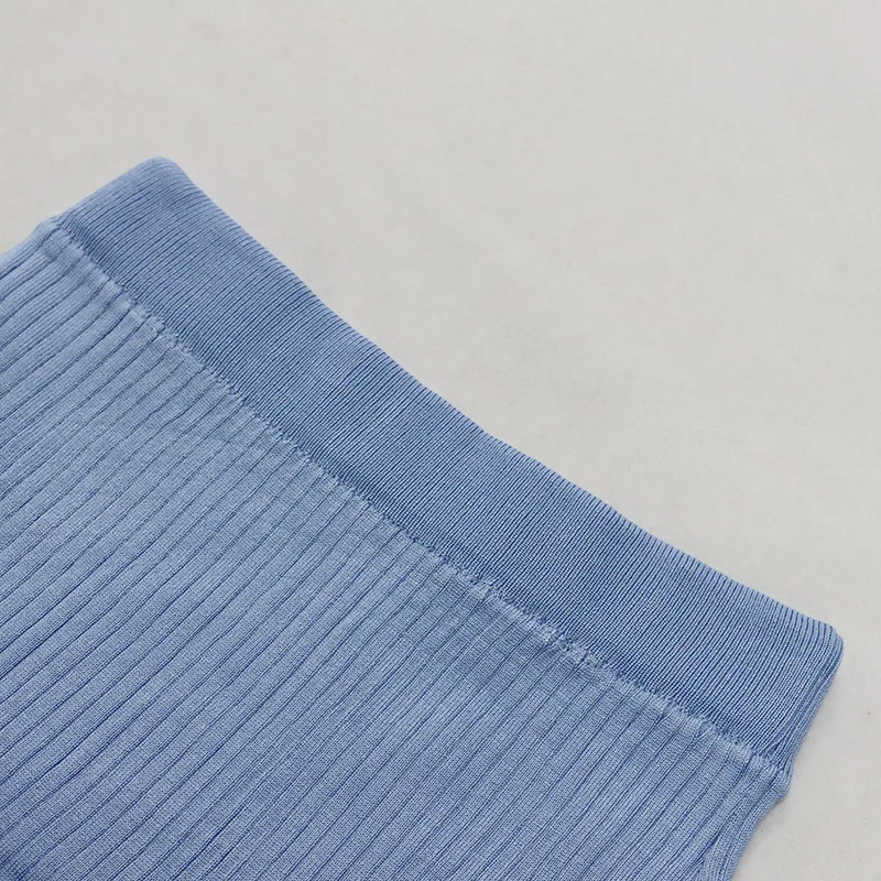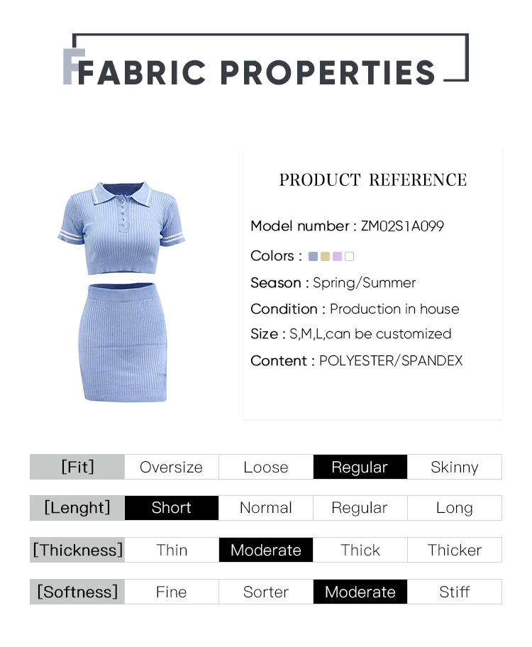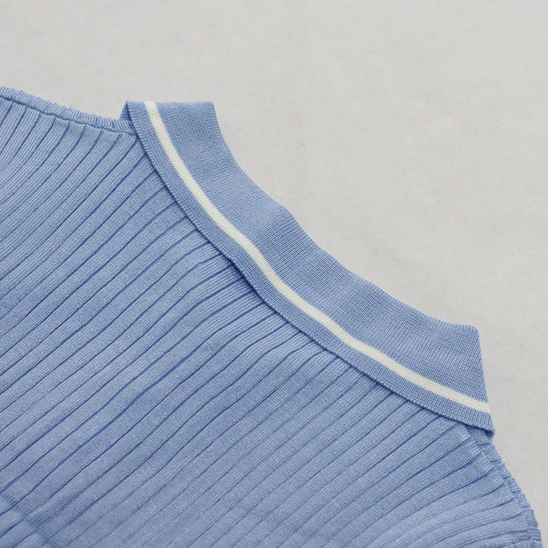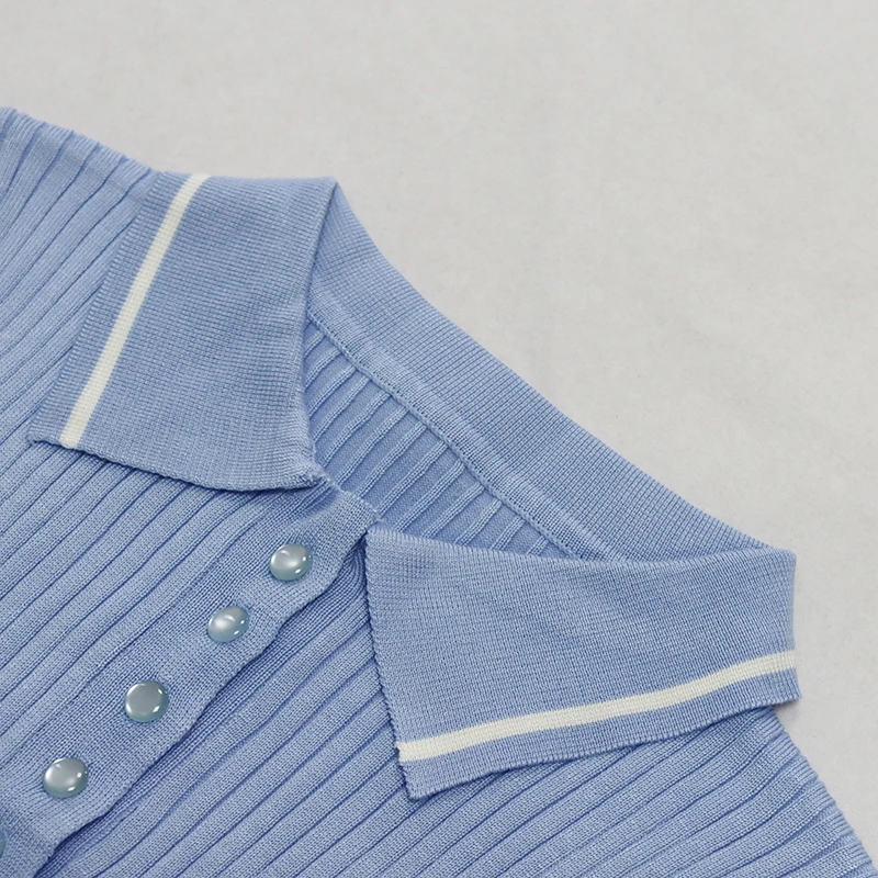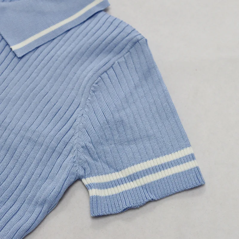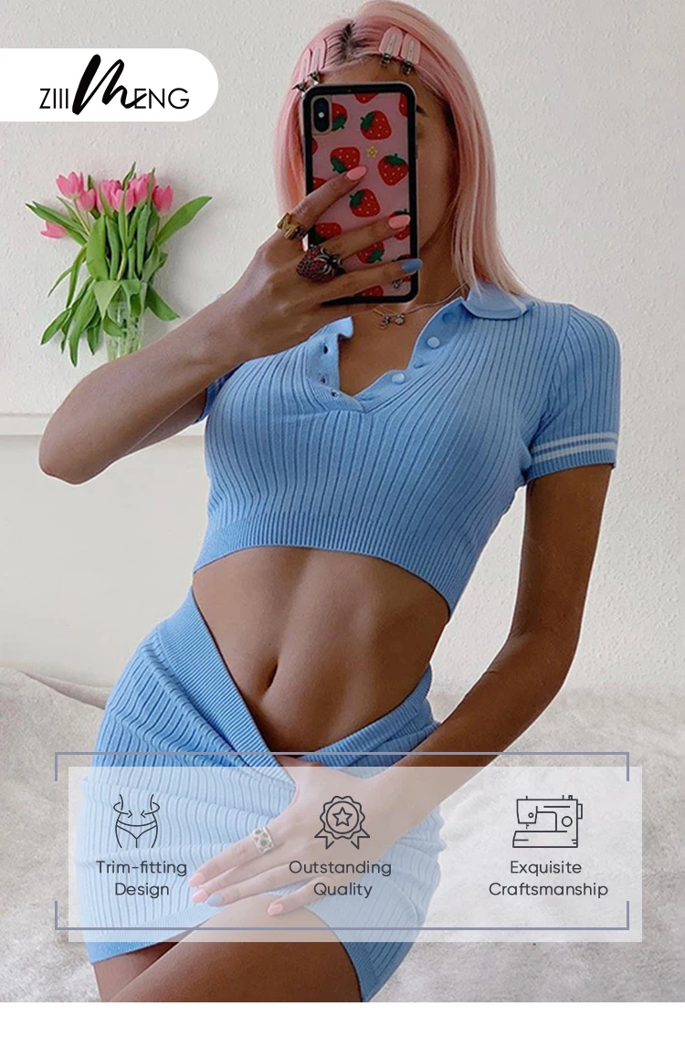 Hot Popular Polo Collar Short Sleeve Women Knit Sweater Crop Top Bodycon Skirt Two Piece Set