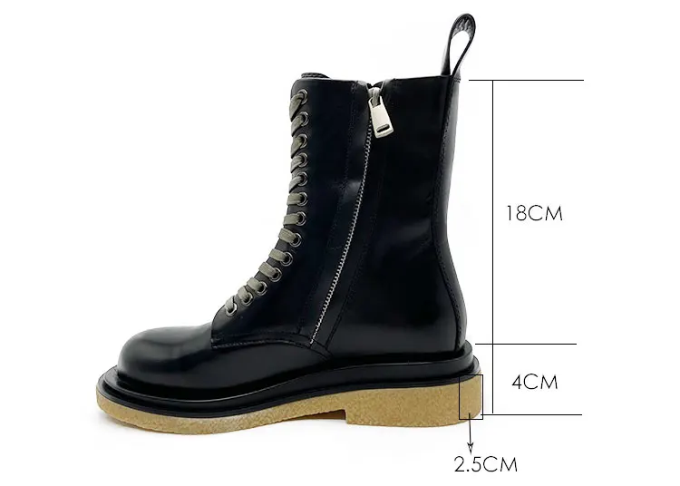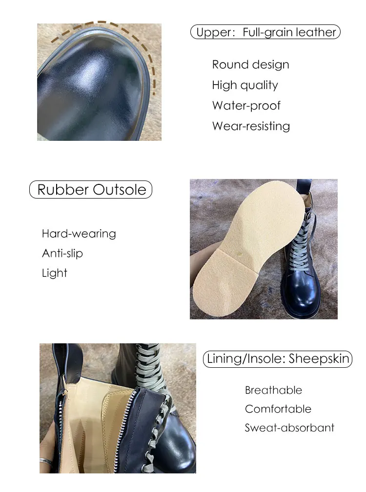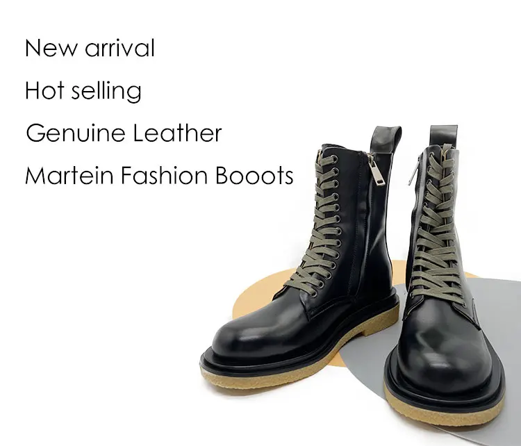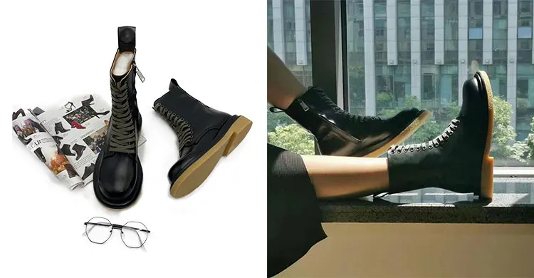 Hot selling Europe chunky bulk toe fashion long rubber lace-up leather women boots