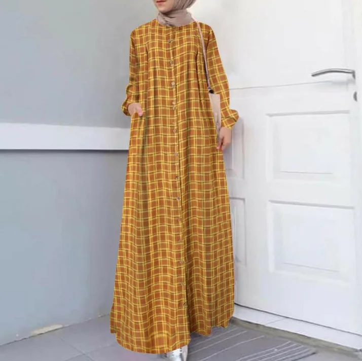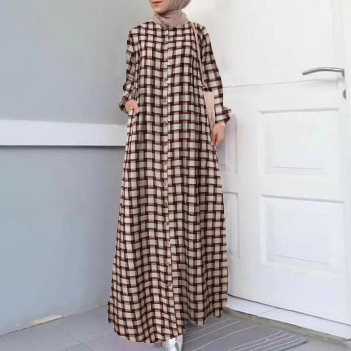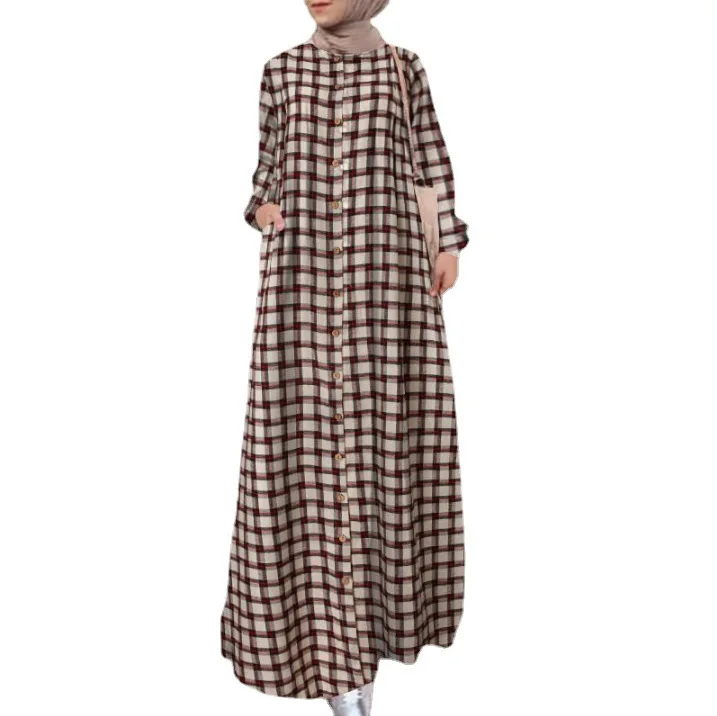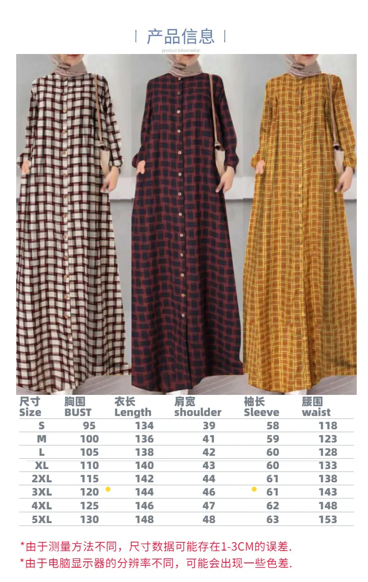 IDS muslim cotton 5XL plus size long sleeve loose plaid islamic clothing abaya dubai muslim clothing in turkey