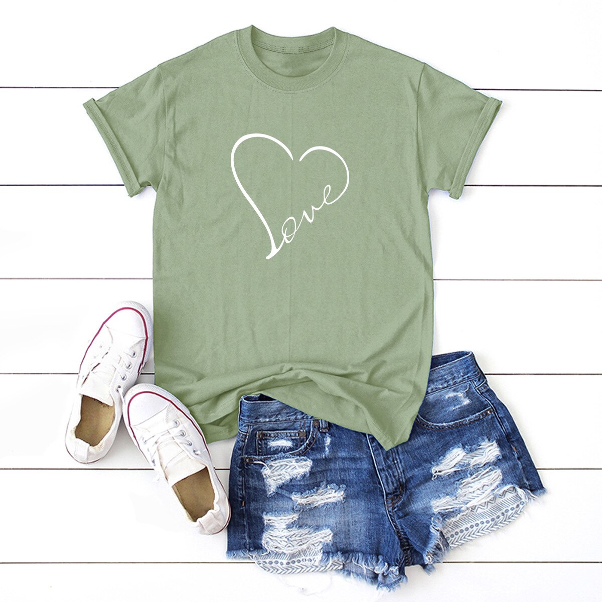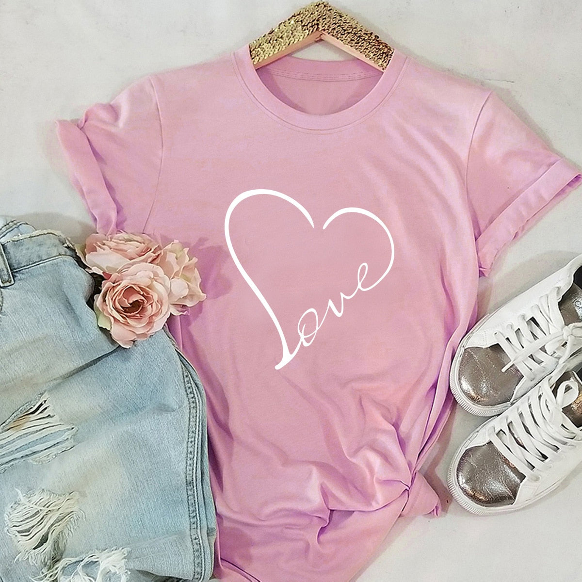JFUNCY Cotton T-shirt Women Love Print T-shirts Women's S-5XL Kawaii Harajuku Female Shirts Top Clothes Camiseta Mujer