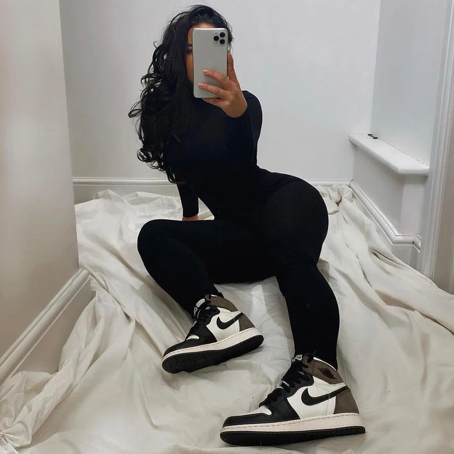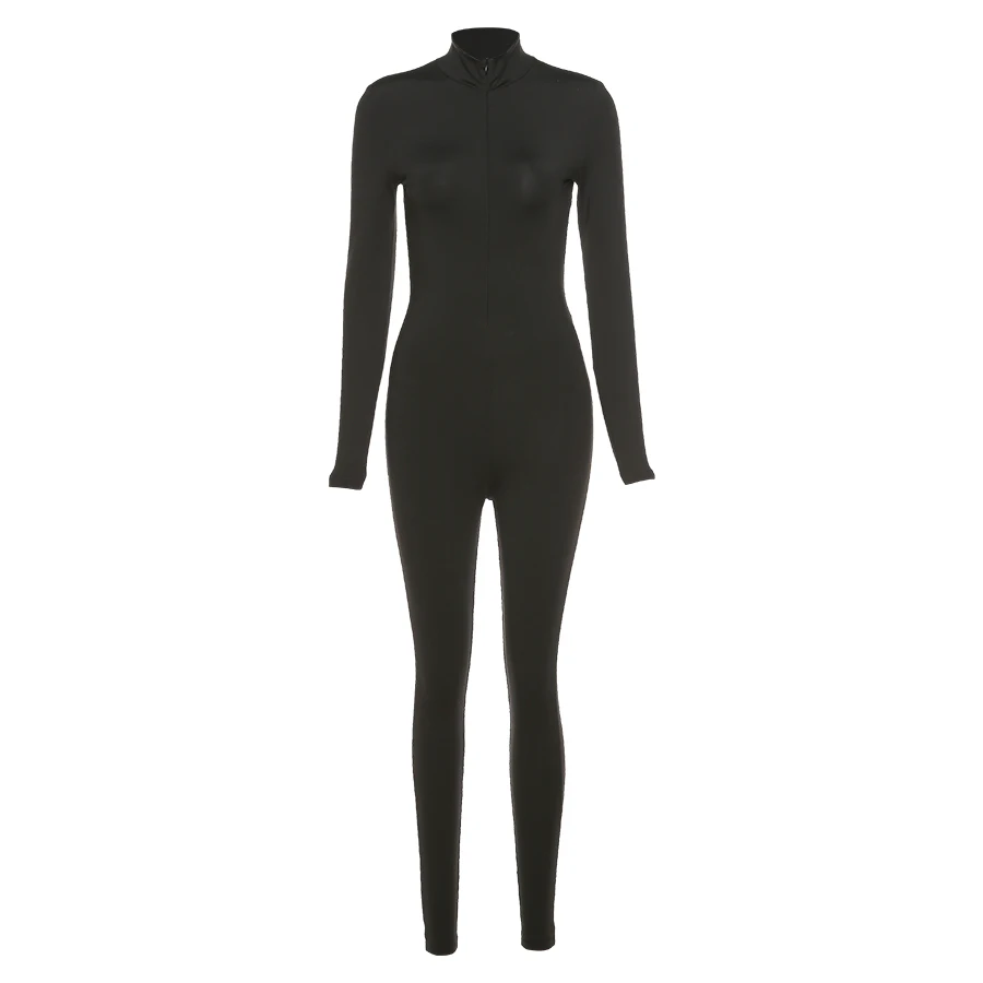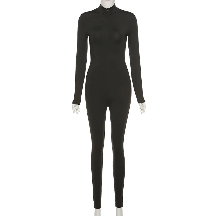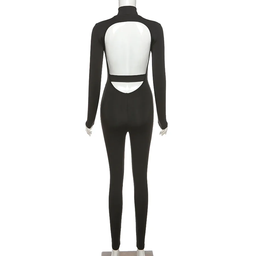 K21Q00232 2021 Spring Backless Stretchy Long Sleeve Skinny Rompers Active Street Casual Women One Piece Jumpsuits