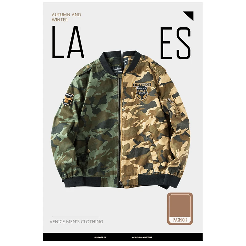 Latest style Fashion custom high quality mens nylon camouflage waterproof flight camo bomber jacket mens