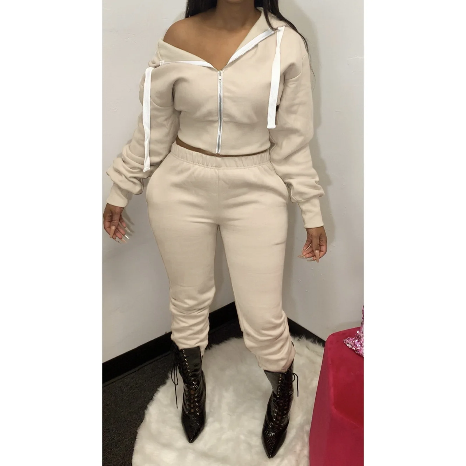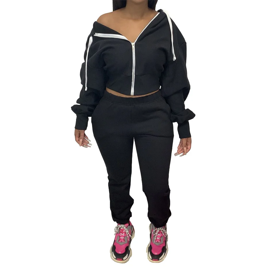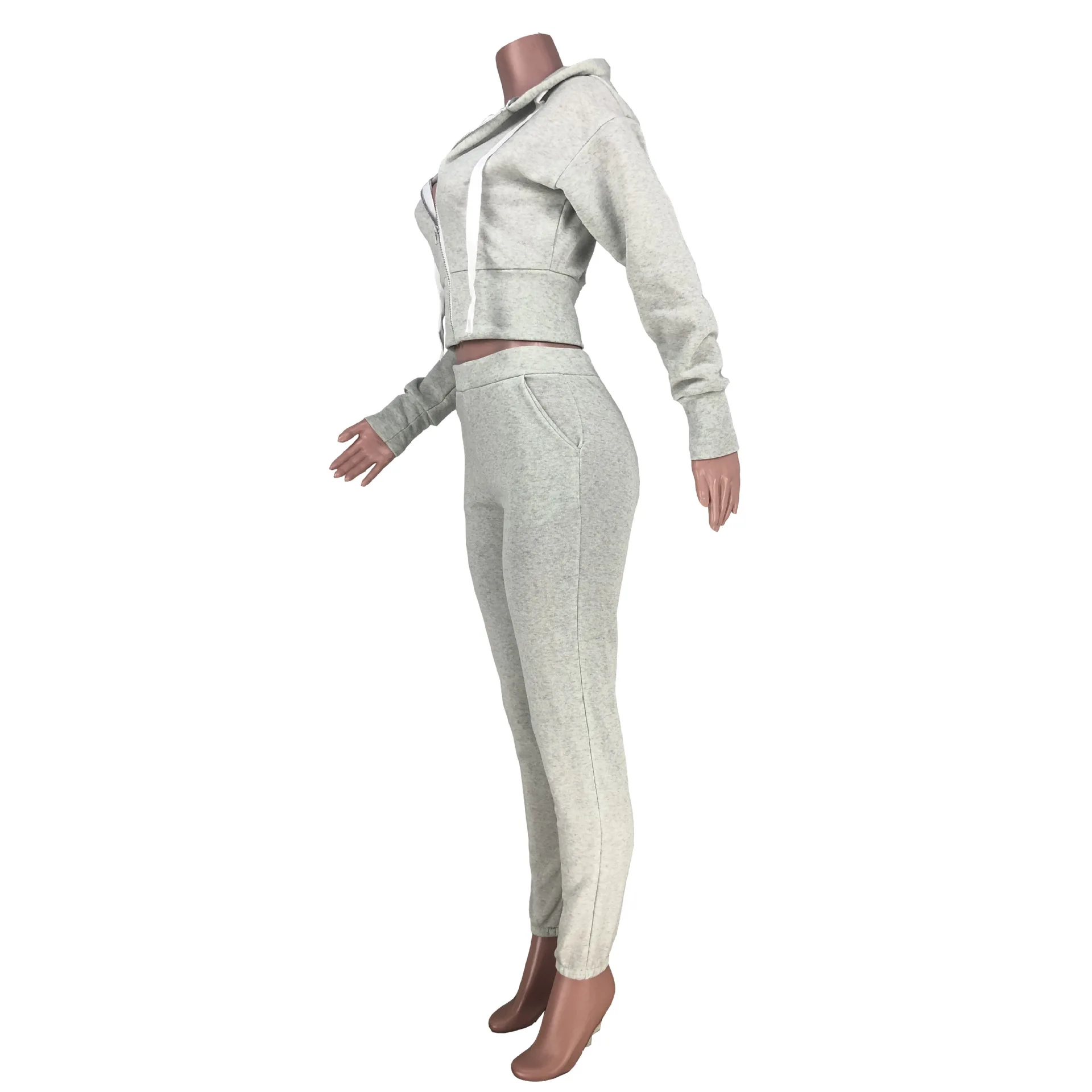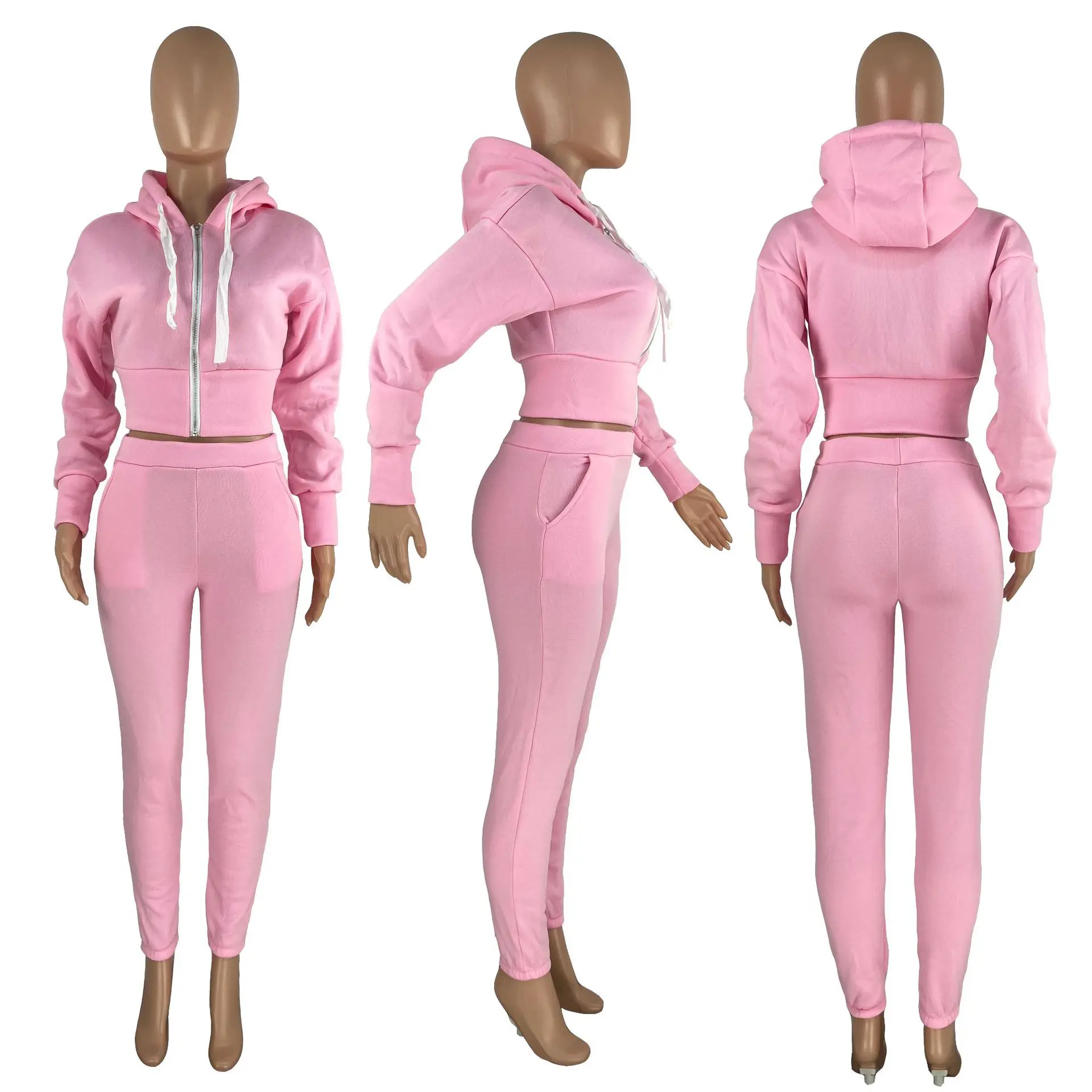 LvCong wholesale cheap price solid color two piece hoodie sets 2022 custom women jogger two piece track suit