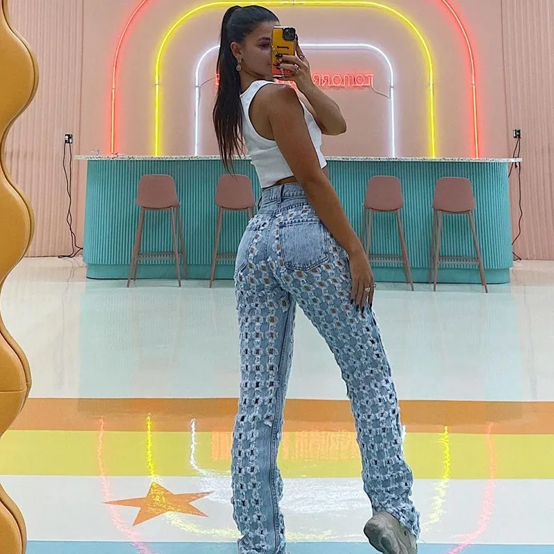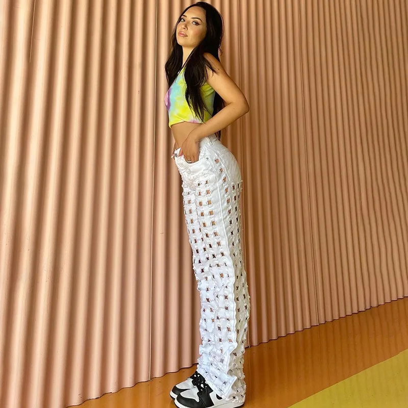 LW 2022 spring white jeans for woman sexy straight casual women jeans with hole |