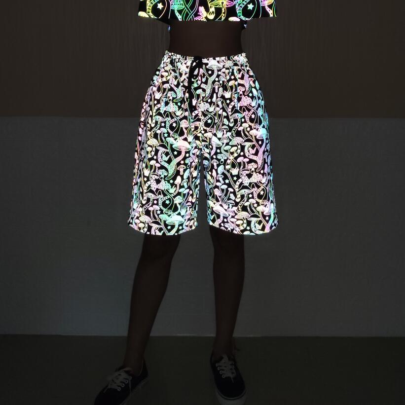 Men Harajuku Night Colorful reflective Mushroom printed Casual Pants Streetwear Man Hip Hop Elastic waist joggers sweatpants