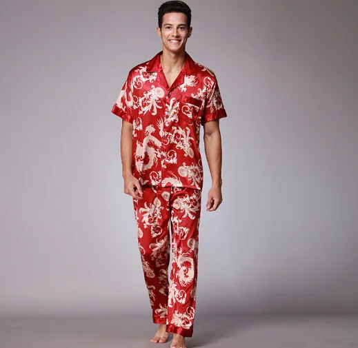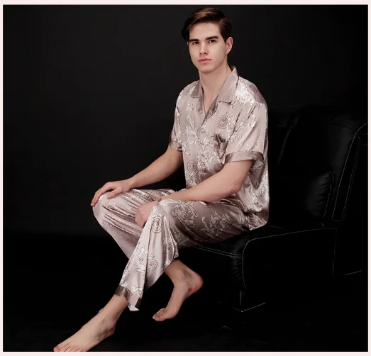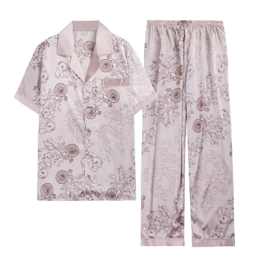 Men's short-sleeved top trouserst two-piece suit spring printed homewear wholesale pajamas