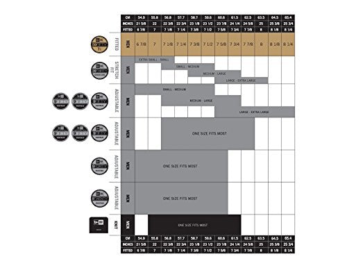 - Small/medium fits head sizes 7 through 7 3/8, and medium/large fits 7 1/4 through 7 5/8