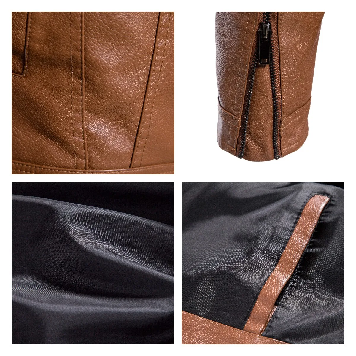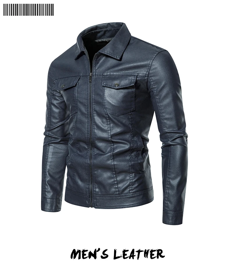 New Arrival Spring Men's Casual Zip Up Slim Solid Bomber Faux Leather Jacket For Office