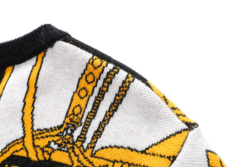 New Arrivals Men's Fashion Gold Floral Knitwear Winter Men's Clothing Crew Neck Long Sleeve Sweater for Men