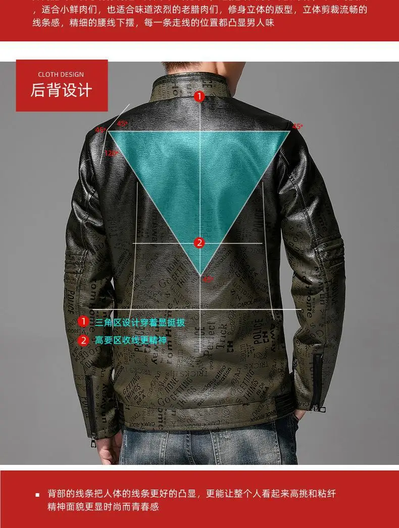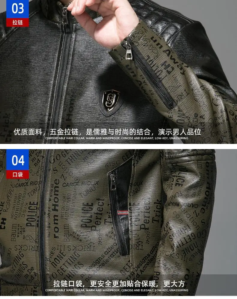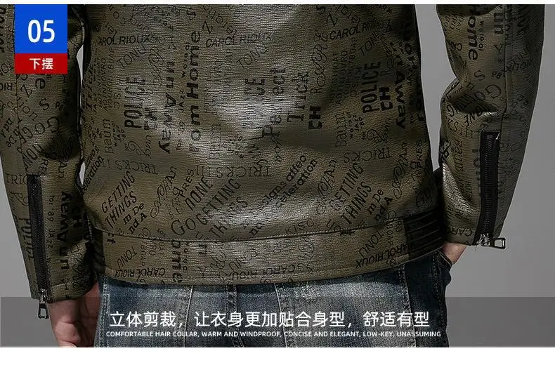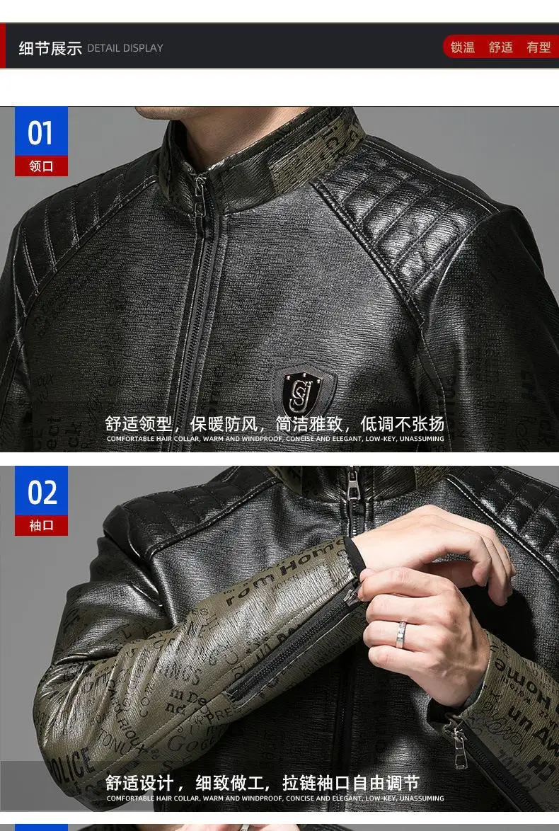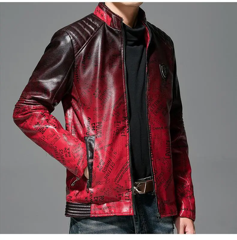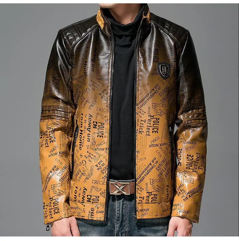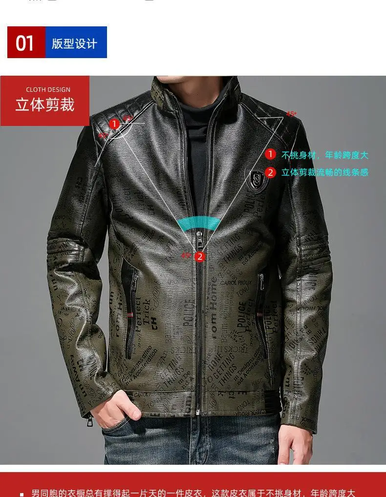 New arrive men Leather Jacket High end Gradient letter printing Stand Collar PU jackets Male Motorcycle Zipper fleece warm coat