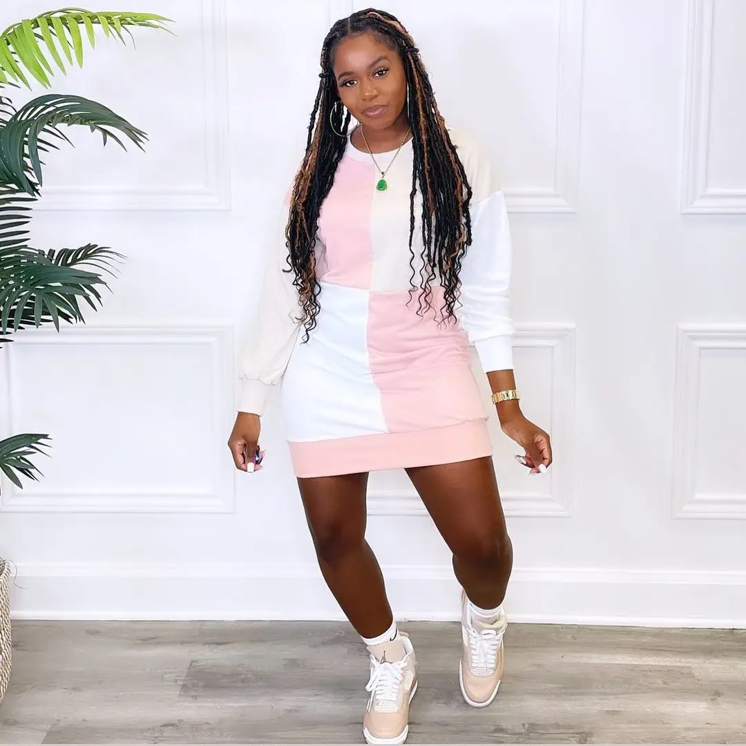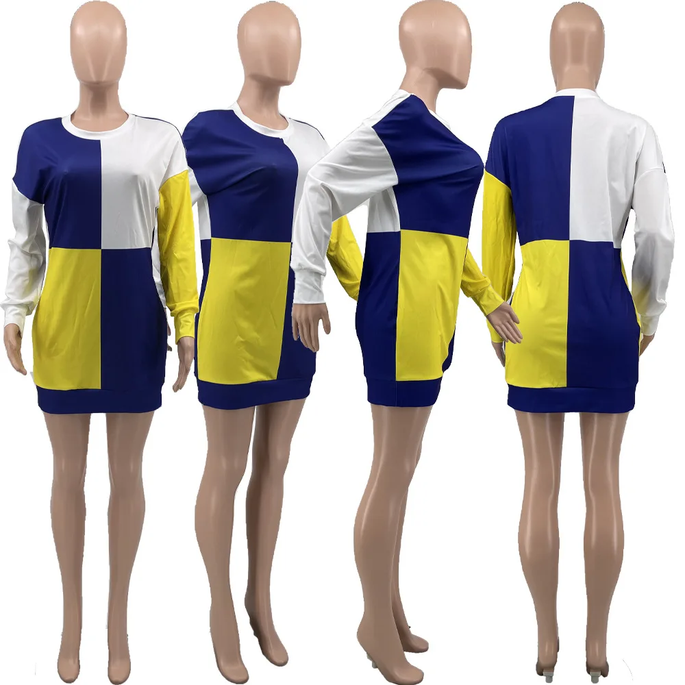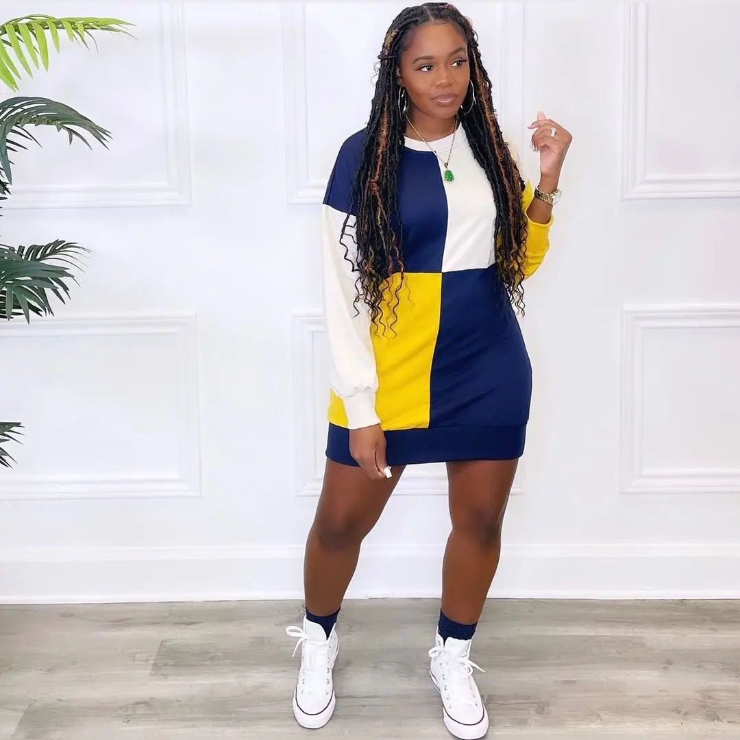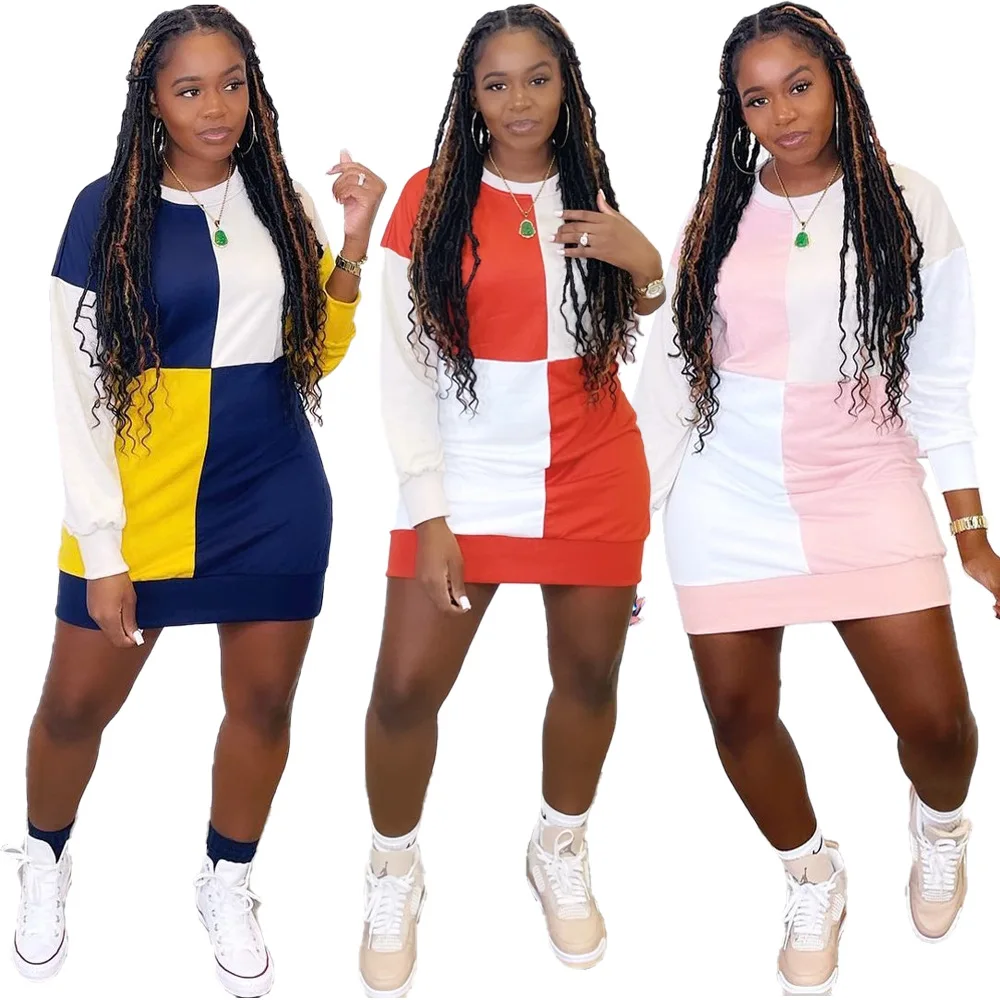 New Casual Sweatshirt Short Dress Basic Printed Patchwork Short Dress Short Casual Sweater Dress