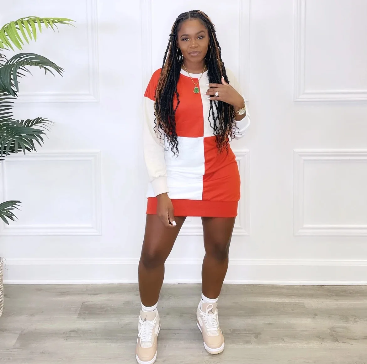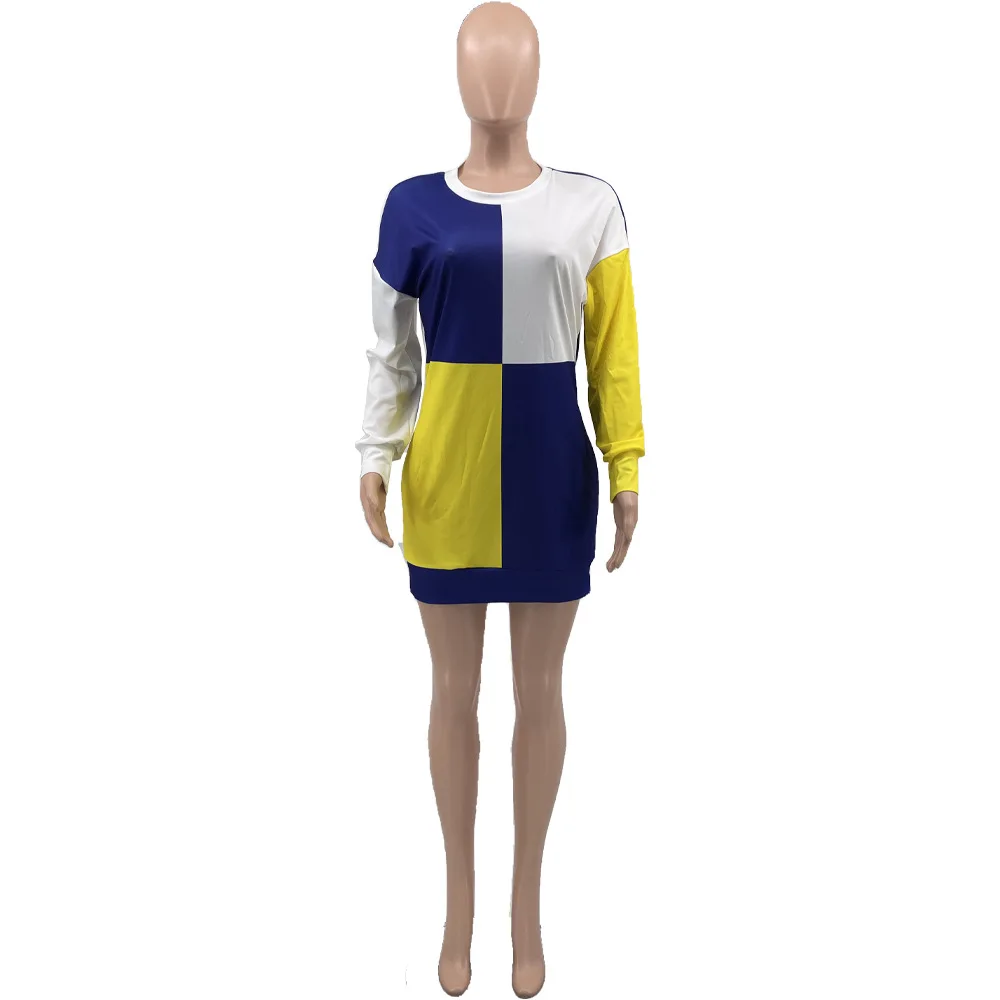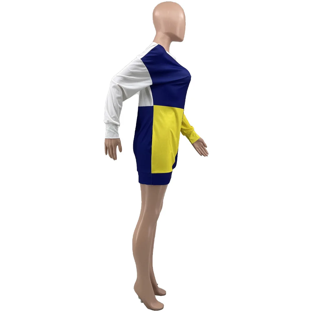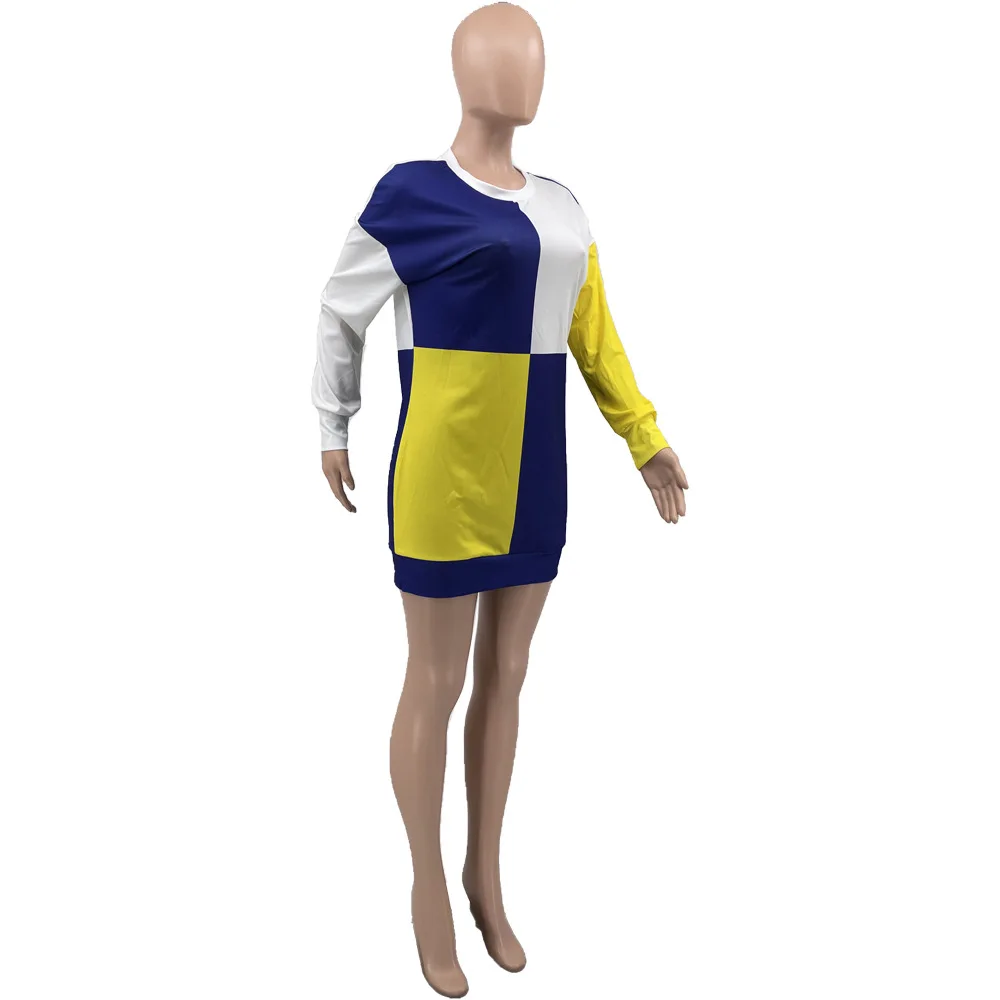 New Casual Sweatshirt Short Dress Basic Printed Patchwork Short Dress Short Casual Sweater Dress