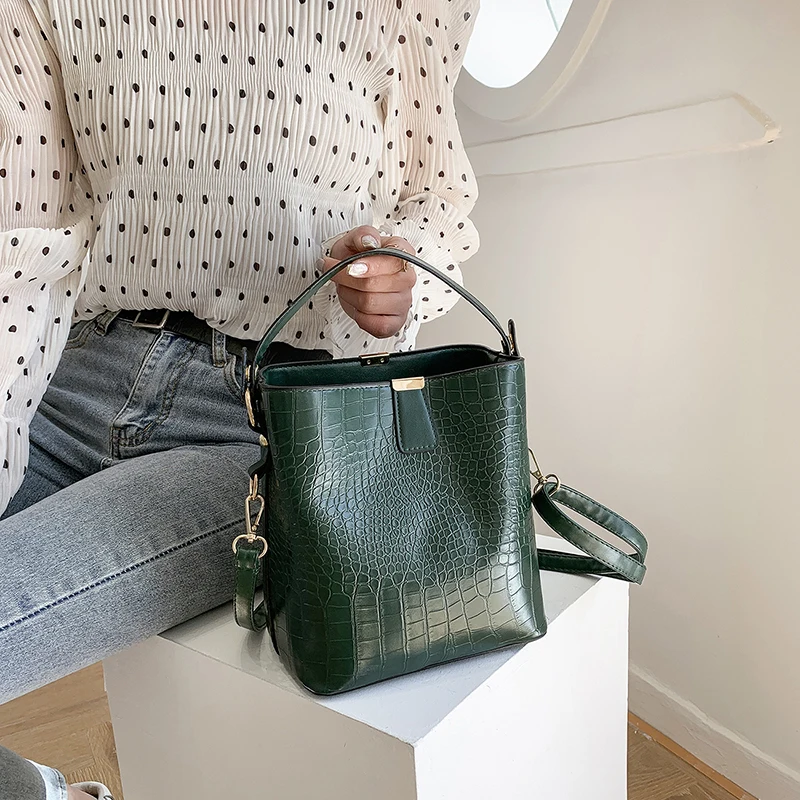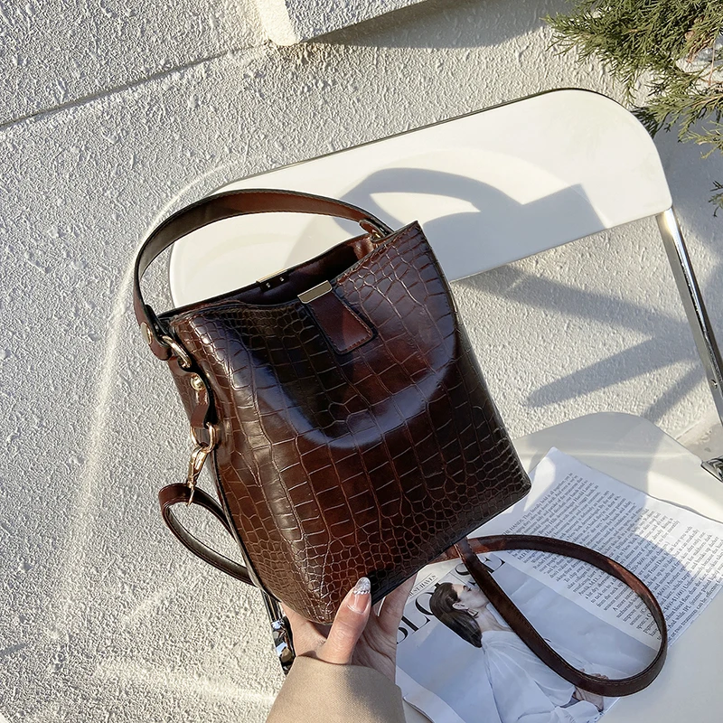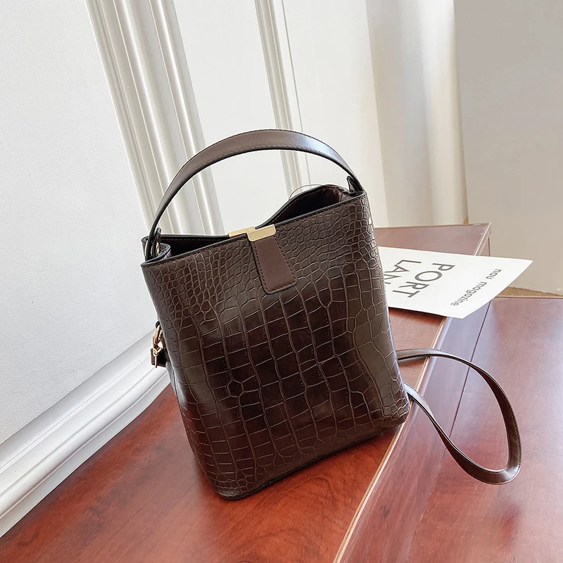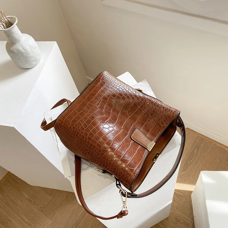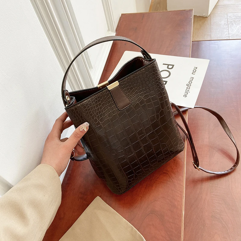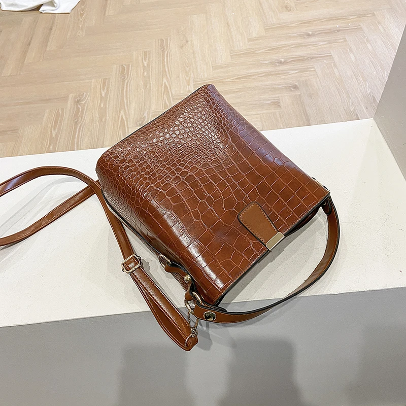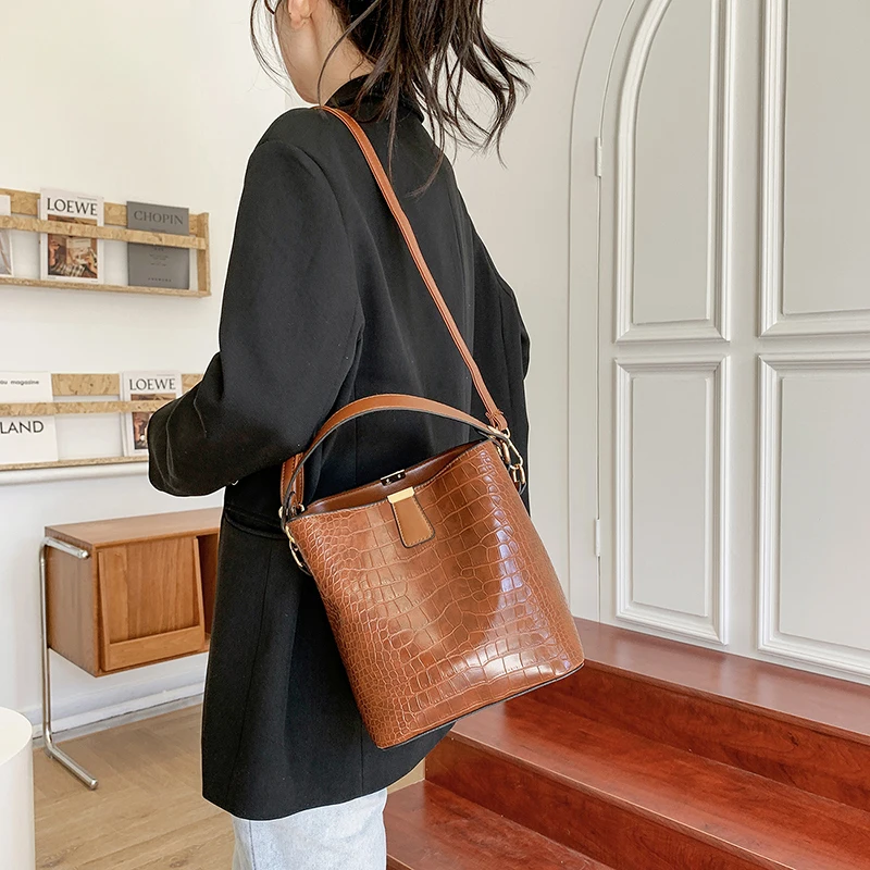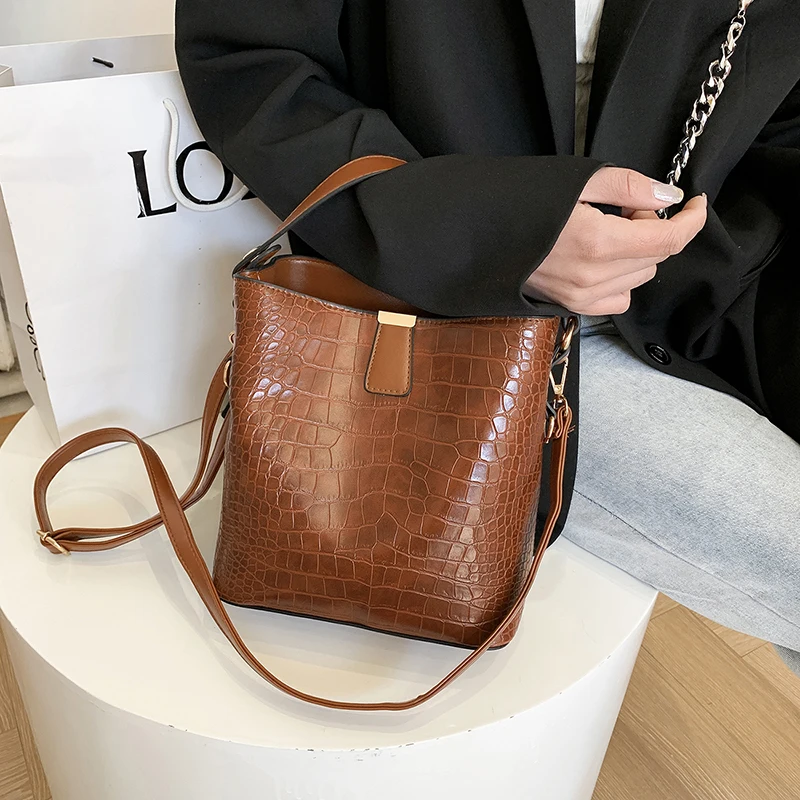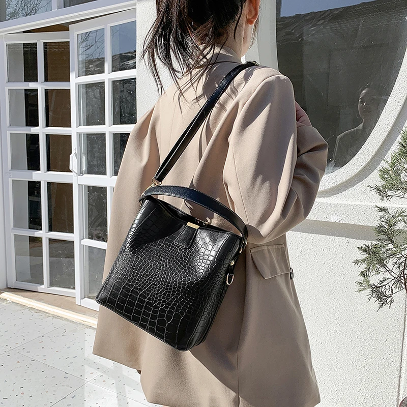 New Fashion Female Crocodile Grain Hand-Held Bucket Bag Leisure Shoulder Bag Ladies Handbags Custom Logo Popular Shoulder Purse