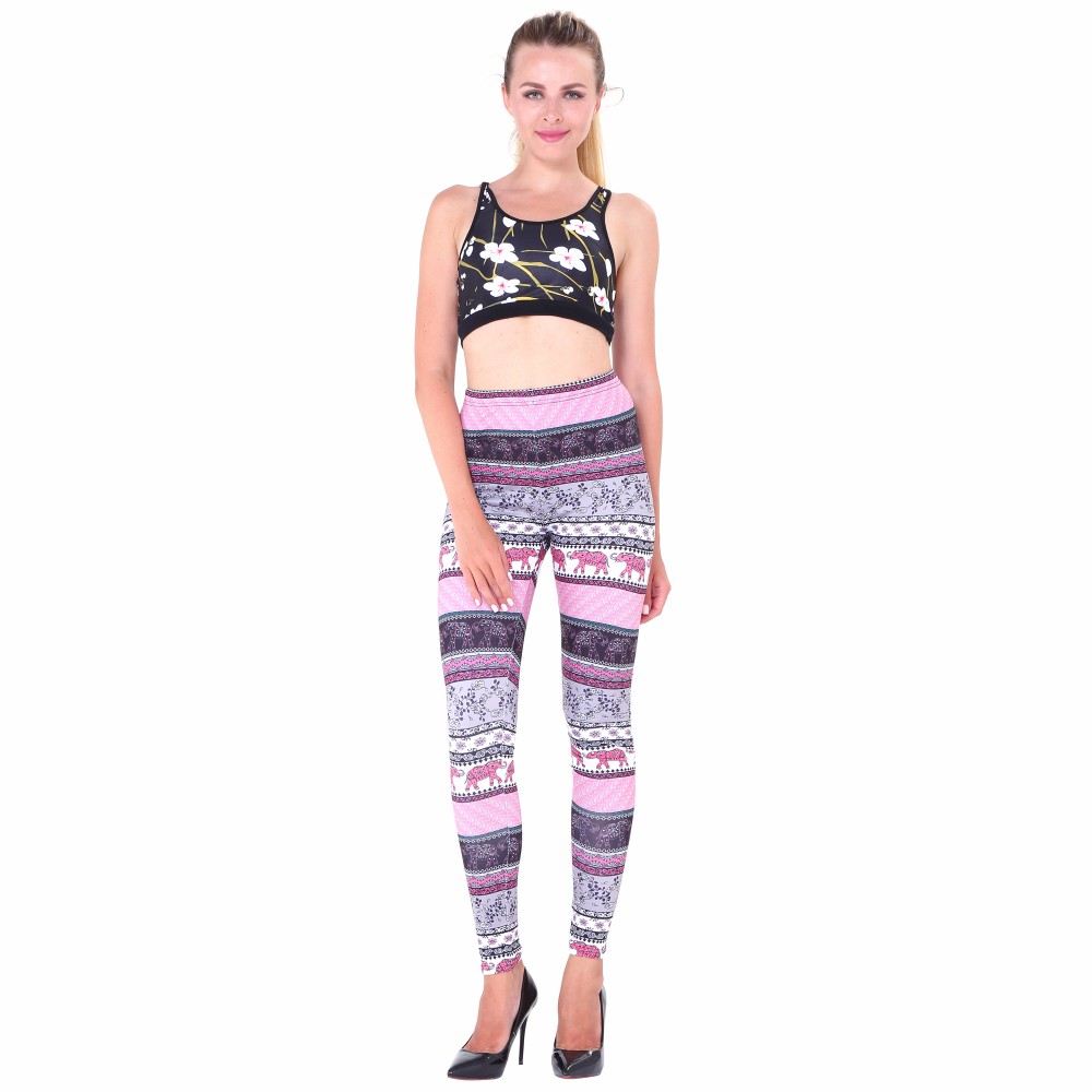 OEM Services pattern printed double brushed high quality floral leggings colored
