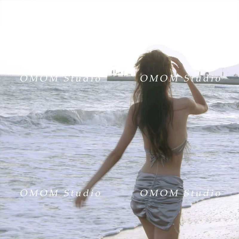 Omom2023 Shiny Swimsuit Women's Small Size Sexy Bikini Four-Piece Suit Swimsuit Seaside Vacation