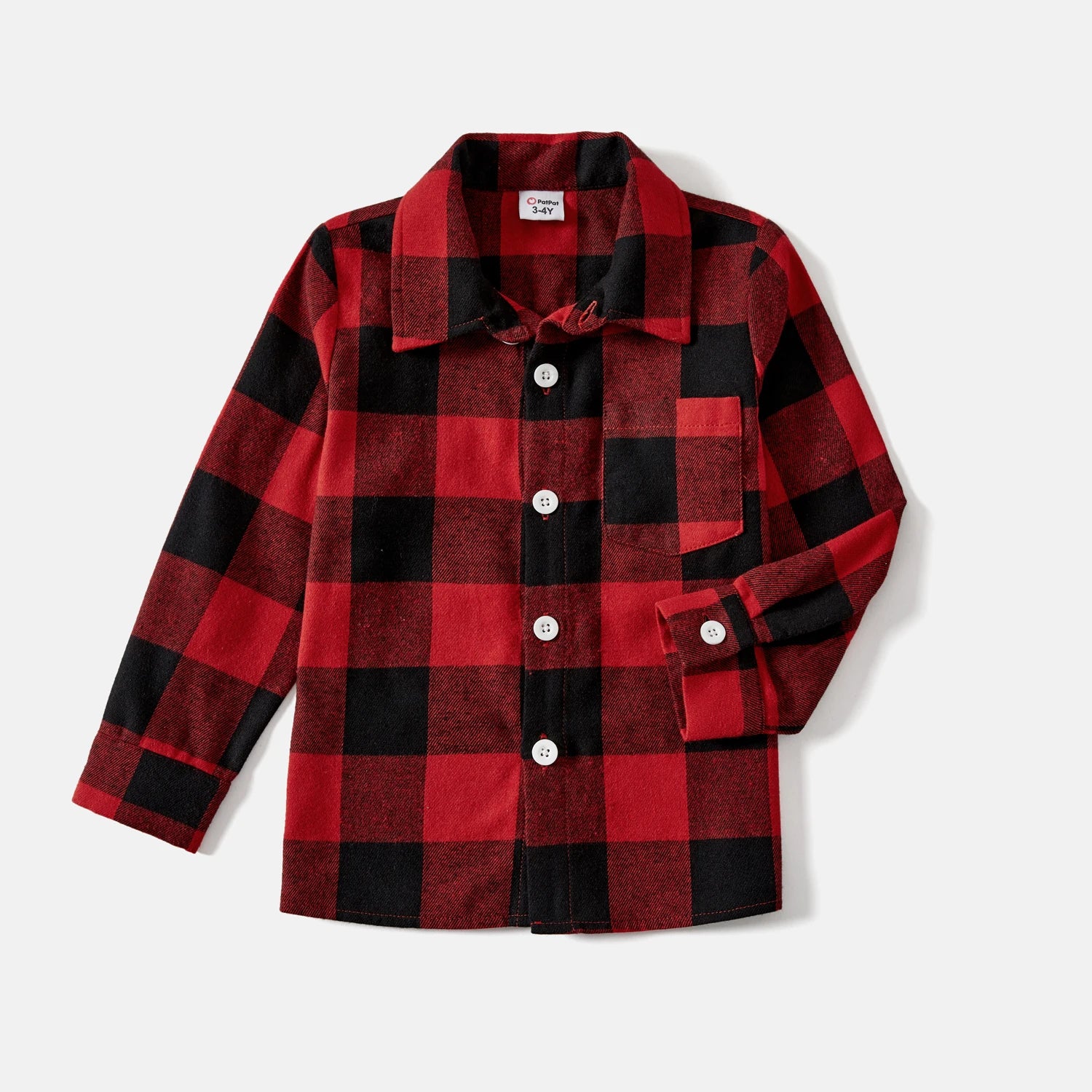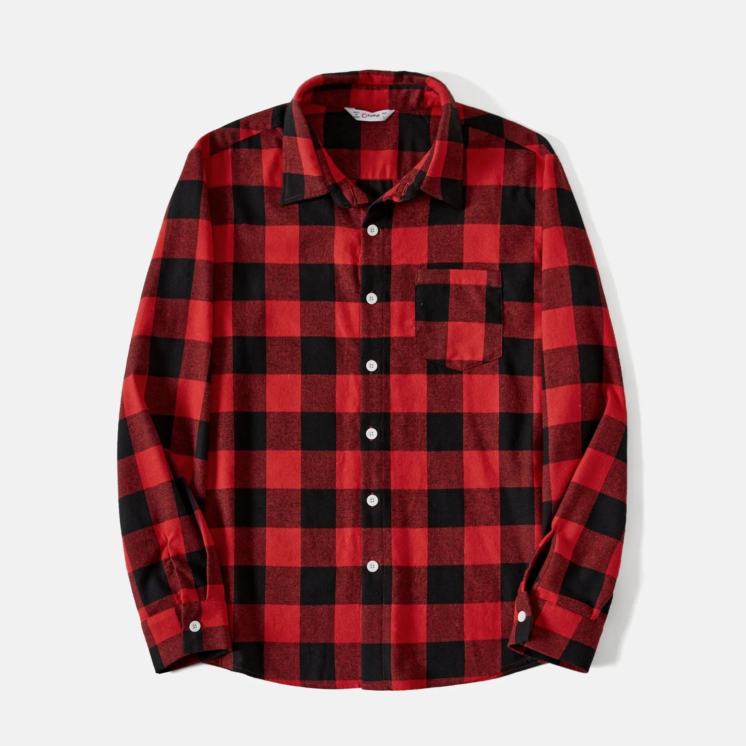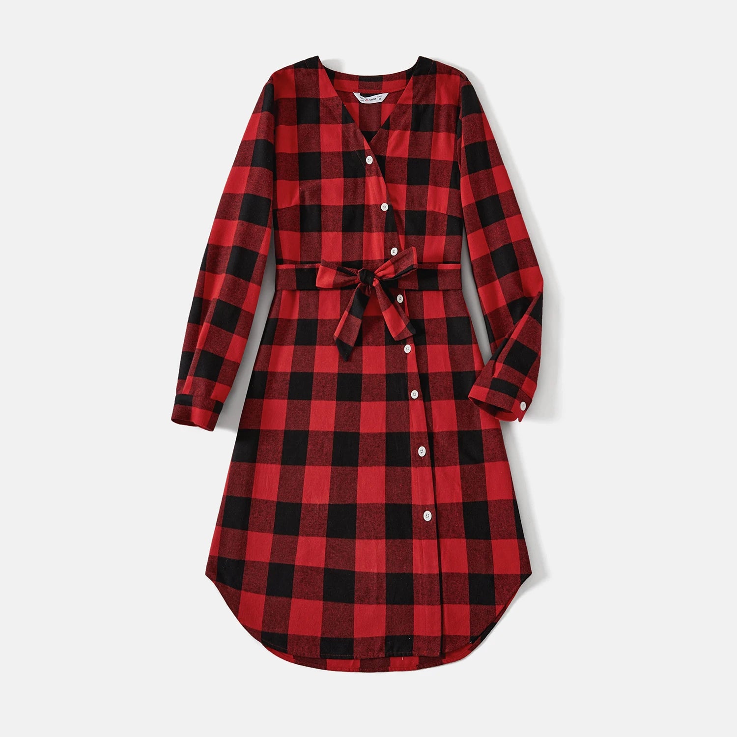 PatPat Christmas Family Matching Outfits Red and Black Plaid Long-sleeve Shirts and Belted Dresses Matching Family Clothes Sets