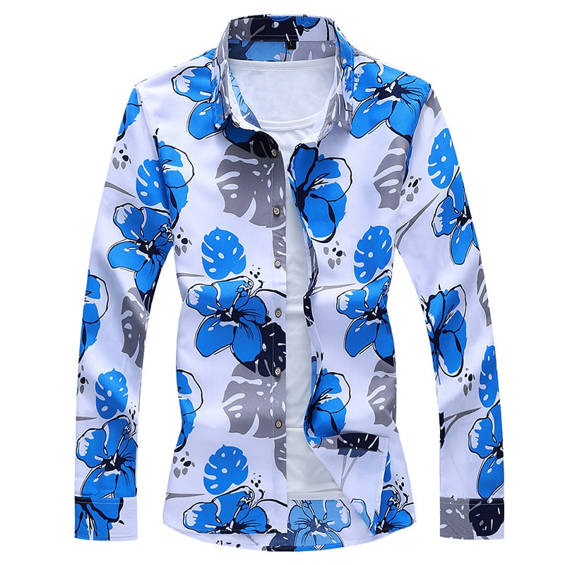 Plus Size 5XL 6XL 7XL Men's Long Sleeve Shirt 2021 Autumn New Fashion Print Floral Male Slim Fit Business Casual Shirts
