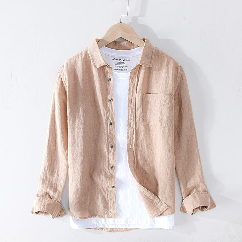 Pure Linen Shirts for Men Long Sleeve Casual Turn-down Collar Basic Classic Tops Male Fashion Solid Color Retro Clothing 2022