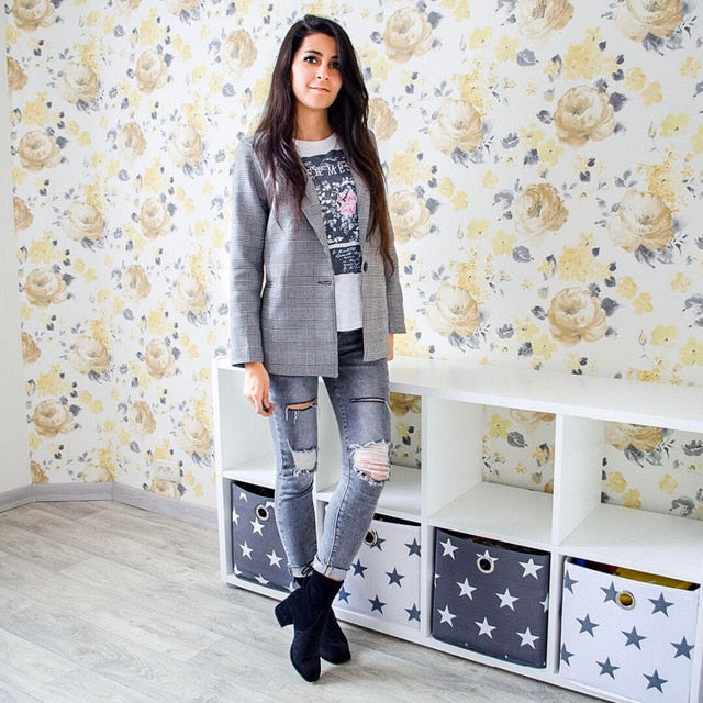 Queechalle 2021 Autumn Suit Blazers Women Office Lady Casual Plaid Blazer Jackets Women's Elegant Notched Formal Blazer Feminino