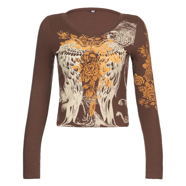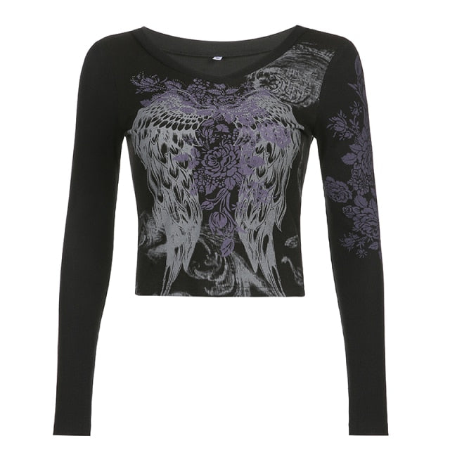 Retro Grunge Tshirts Fairycore Harajuku Graphic Print Gray Cute Casual Tshirts Streetwear Dark Academia Tops Cuteandpsycho