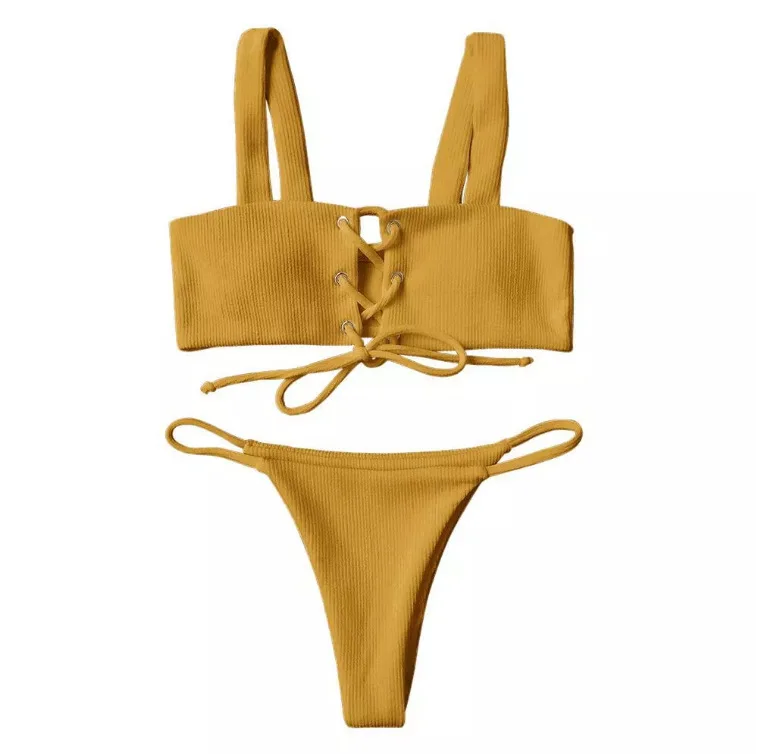 2021 new solid color lacing leopard sexy swimsuit two-pieces set womens bikini |