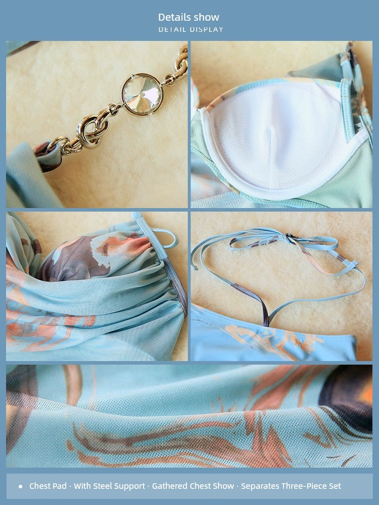 Sexy Bikini Swimsuit Women's Three-Piece Set Seaside Vacation Dress Small Chest Push up with Steel Support Sexy Hot Spring Swimsuit