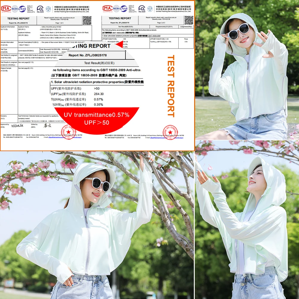 Sidiou Group Windbreaker Apparel Ice Silk Zip Long Sleeve Lightweight Jacket With Hat Face Shield Loose Sun-Protective Clothing